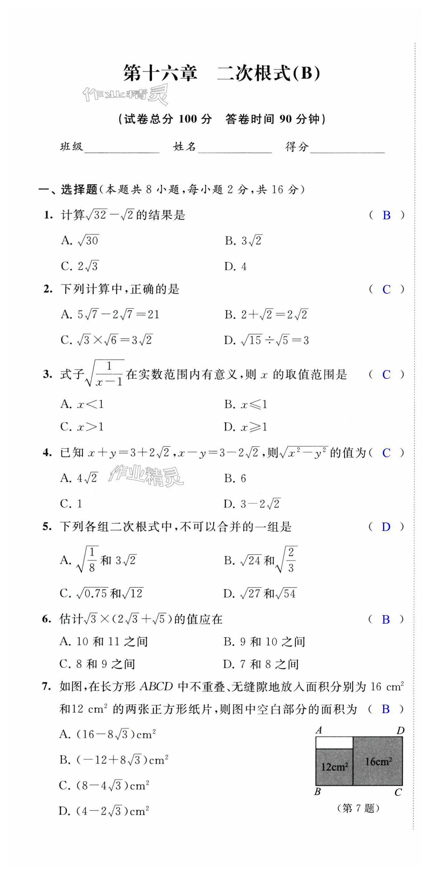 注:目前有些书本章节名称可能整理的还不是很完善,但都是按照顺序排列的,请同学们按照顺序仔细查找。练习册 2024年自我提升与评价八年级数学下册人教版 答案主要是用来给同学们做完题方便对答案用的,请勿直接抄袭。