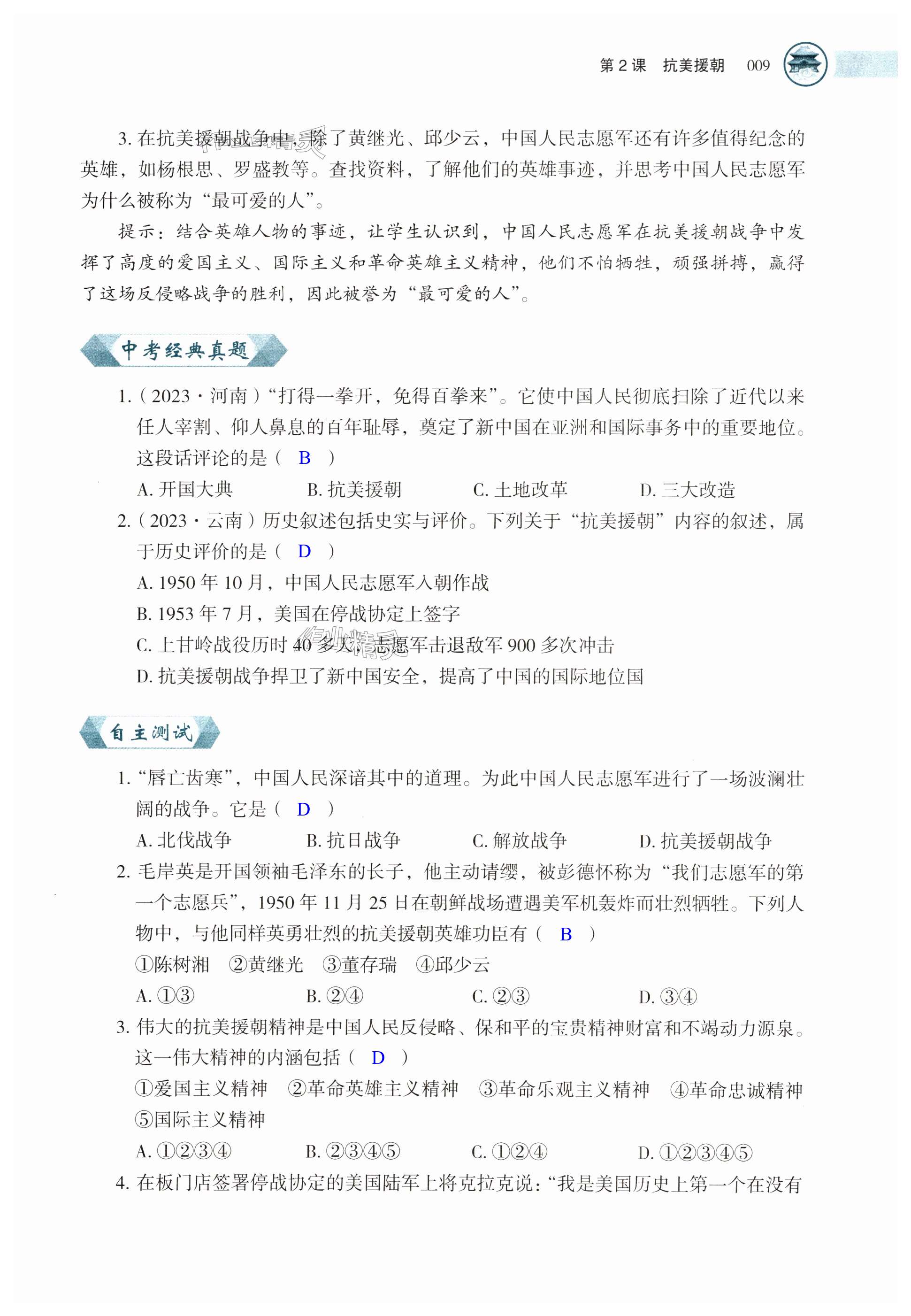 注:目前有些书本章节名称可能整理的还不是很完善,但都是按照顺序排列的,请同学们按照顺序仔细查找。练习册 2024年助学读本八年级历史下册人教版湖北专版 答案主要是用来给同学们做完题方便对答案用的,请勿直接抄袭。