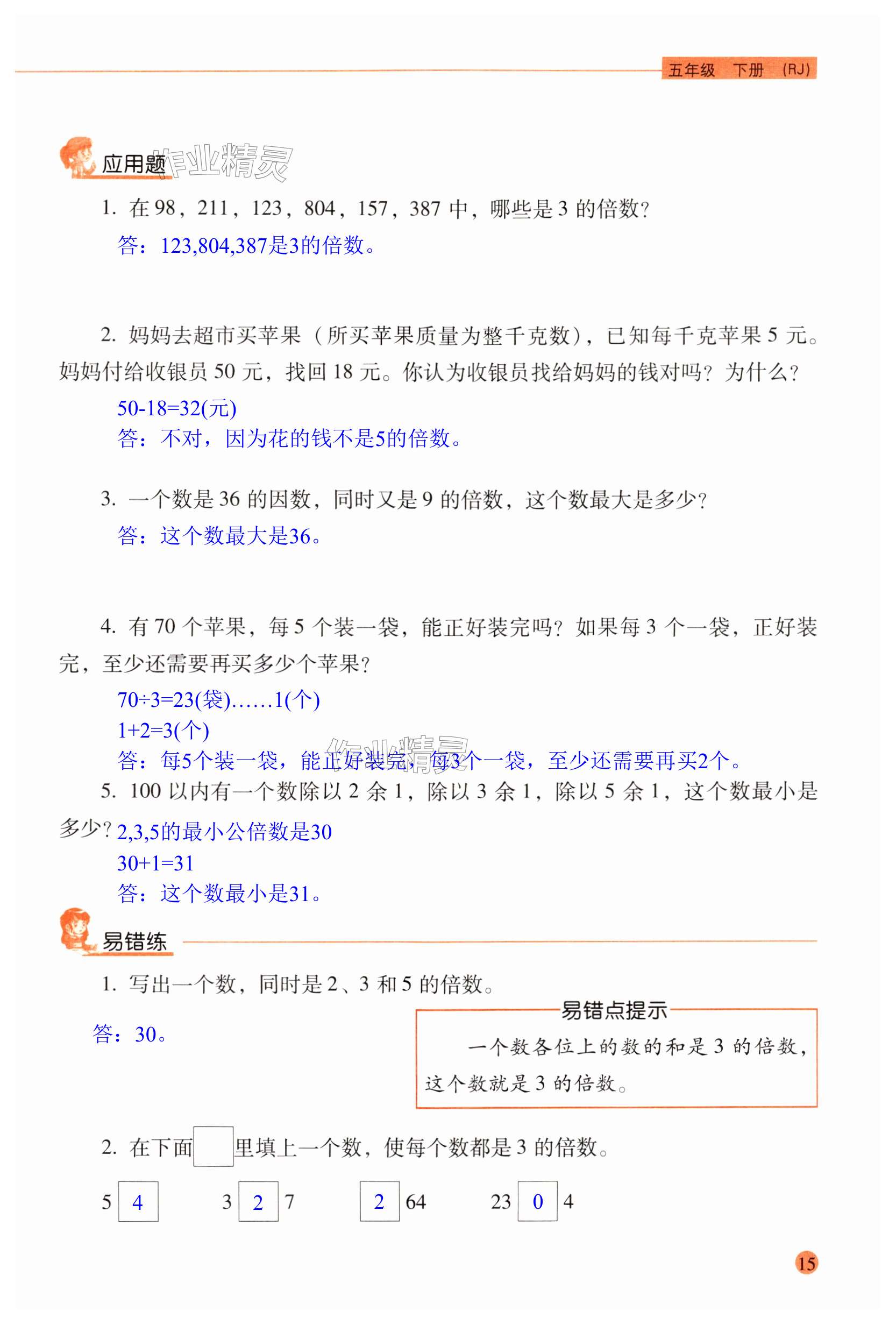 注:目前有些书本章节名称可能整理的还不是很完善,但都是按照顺序排列的,请同学们按照顺序仔细查找。练习册 2024年晨光全优口算应用题天天练五年级数学下册人教版 答案主要是用来给同学们做完题方便对答案用的,请勿直接抄袭。