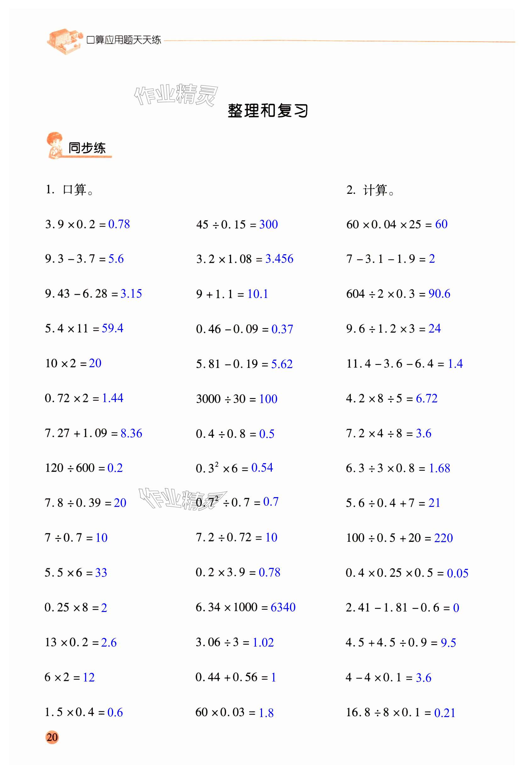 注:目前有些书本章节名称可能整理的还不是很完善,但都是按照顺序排列的,请同学们按照顺序仔细查找。练习册 2024年晨光全优口算应用题天天练五年级数学下册人教版 答案主要是用来给同学们做完题方便对答案用的,请勿直接抄袭。