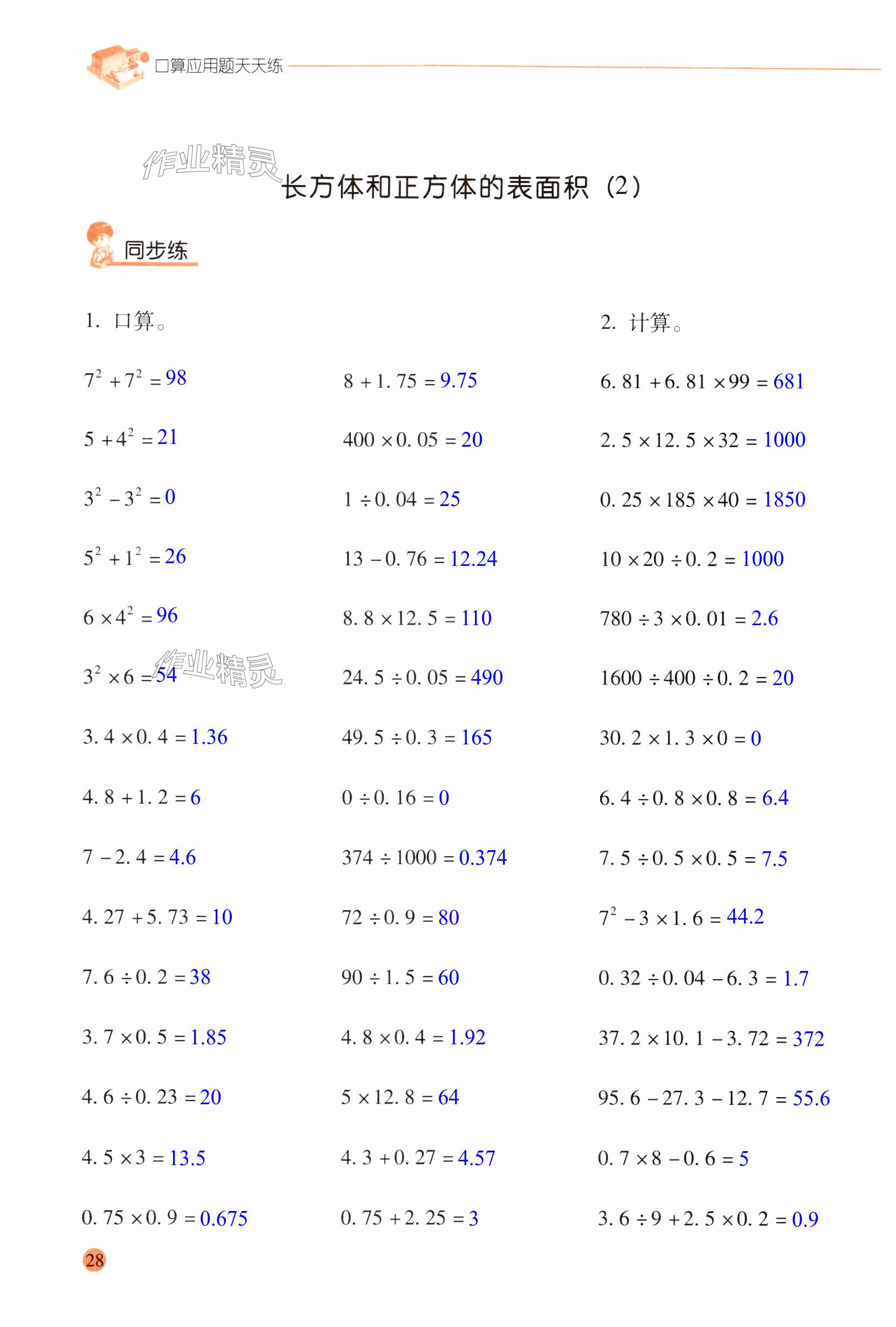 注:目前有些书本章节名称可能整理的还不是很完善,但都是按照顺序排列的,请同学们按照顺序仔细查找。练习册 2024年晨光全优口算应用题天天练五年级数学下册人教版 答案主要是用来给同学们做完题方便对答案用的,请勿直接抄袭。
