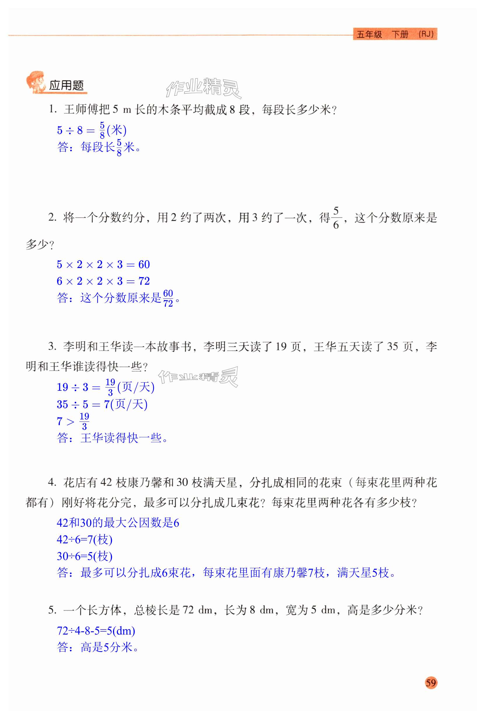 2024年晨光全优口算应用题天天练五年级数学下册人教版