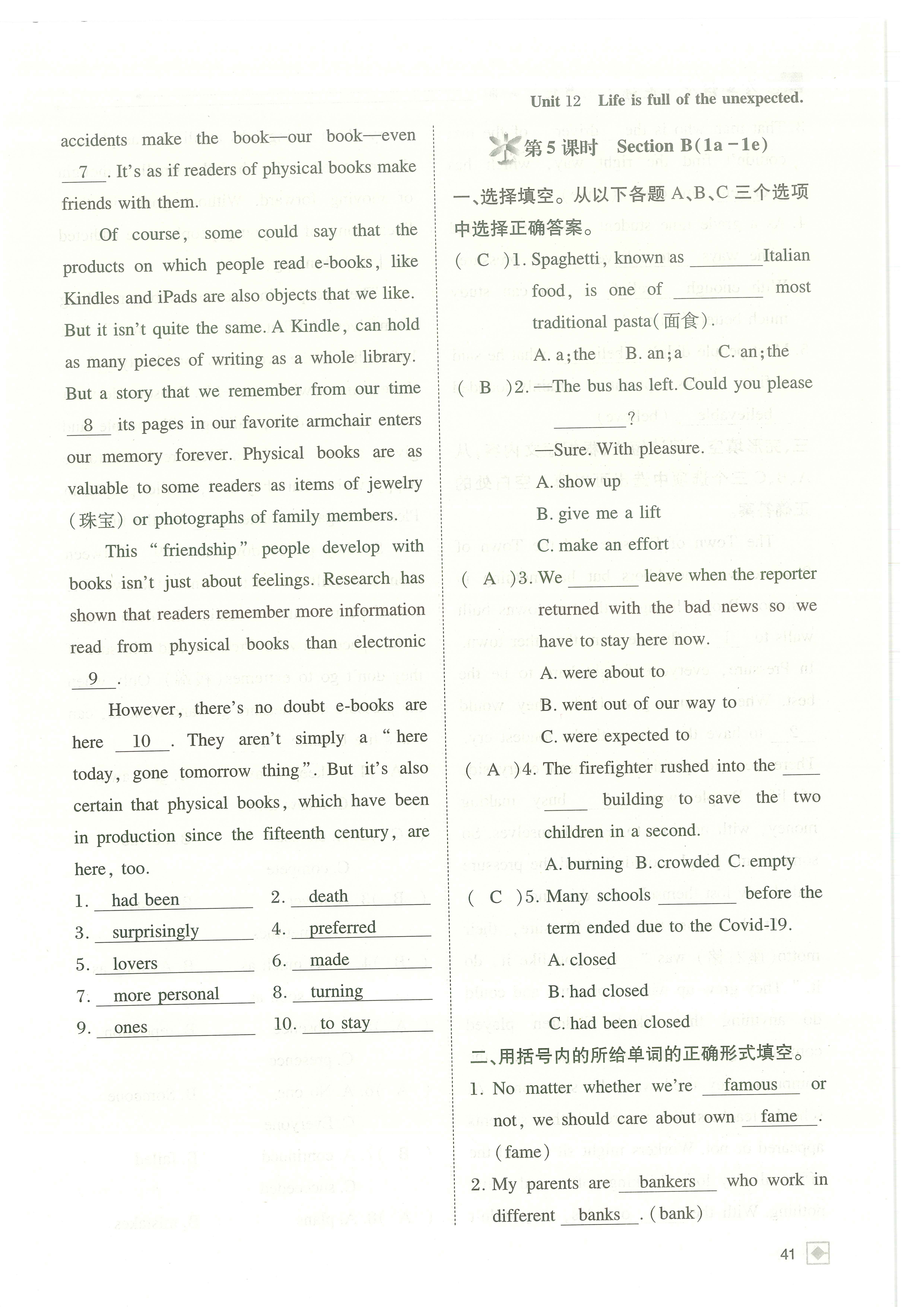 注:目前有些书本章节名称可能整理的还不是很完善,但都是按照顺序排列的,请同学们按照顺序仔细查找。练习册 2024年名校金典课堂九年级英语下册人教版成都专版 答案主要是用来给同学们做完题方便对答案用的,请勿直接抄袭。