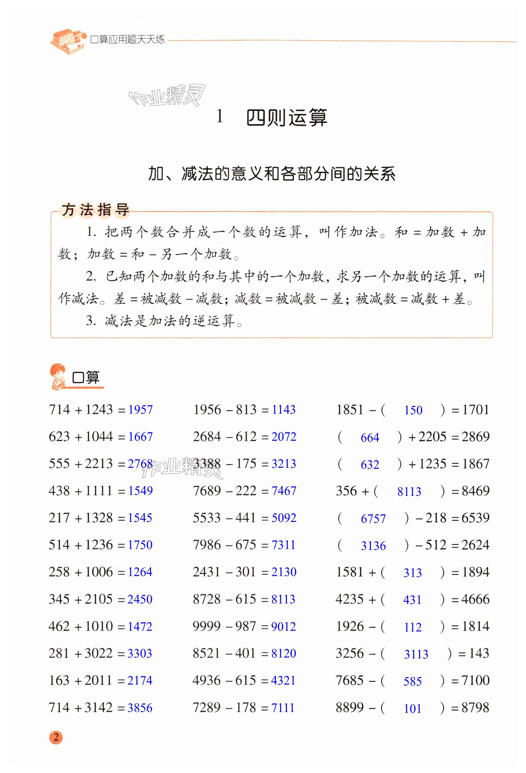 注:目前有些书本章节名称可能整理的还不是很完善,但都是按照顺序排列的,请同学们按照顺序仔细查找。练习册 2024年晨光全优口算应用题天天练四年级数学下册人教版 答案主要是用来给同学们做完题方便对答案用的,请勿直接抄袭。
