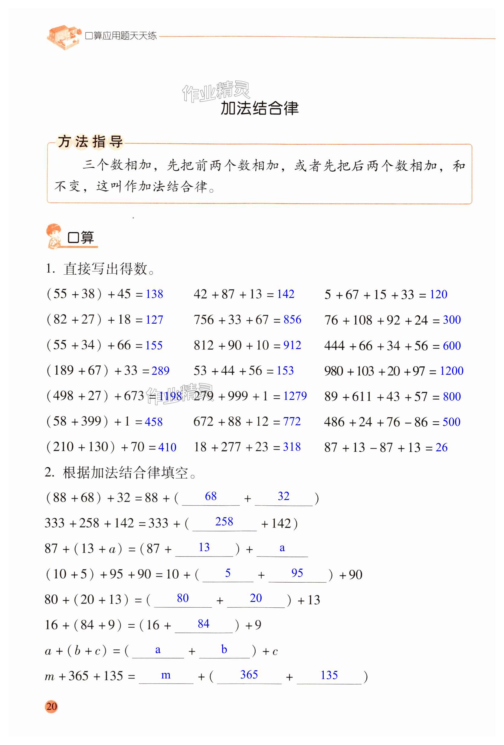 注:目前有些书本章节名称可能整理的还不是很完善,但都是按照顺序排列的,请同学们按照顺序仔细查找。练习册 2024年晨光全优口算应用题天天练四年级数学下册人教版 答案主要是用来给同学们做完题方便对答案用的,请勿直接抄袭。