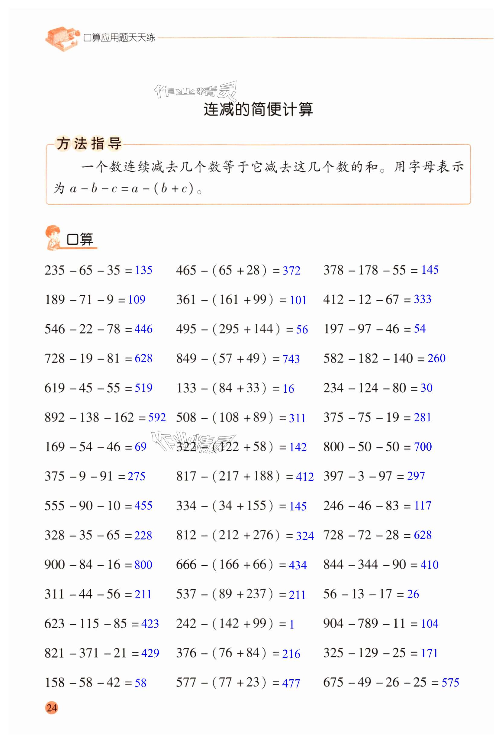 2024年晨光全优口算应用题天天练四年级数学下册人教版