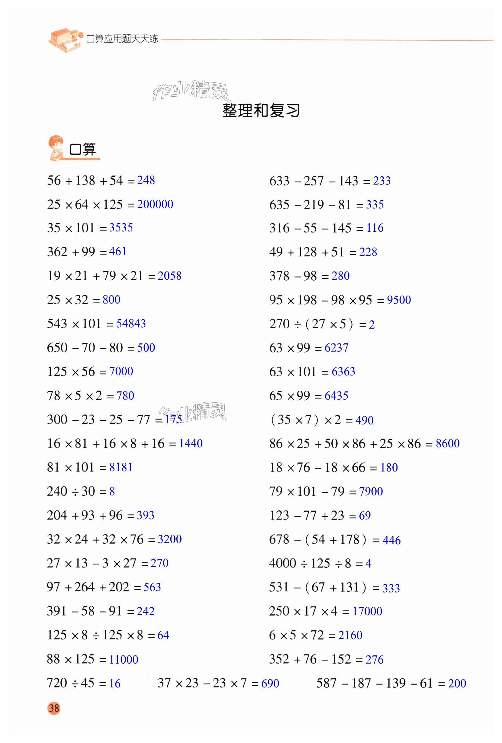 注:目前有些书本章节名称可能整理的还不是很完善,但都是按照顺序排列的,请同学们按照顺序仔细查找。练习册 2024年晨光全优口算应用题天天练四年级数学下册人教版 答案主要是用来给同学们做完题方便对答案用的,请勿直接抄袭。