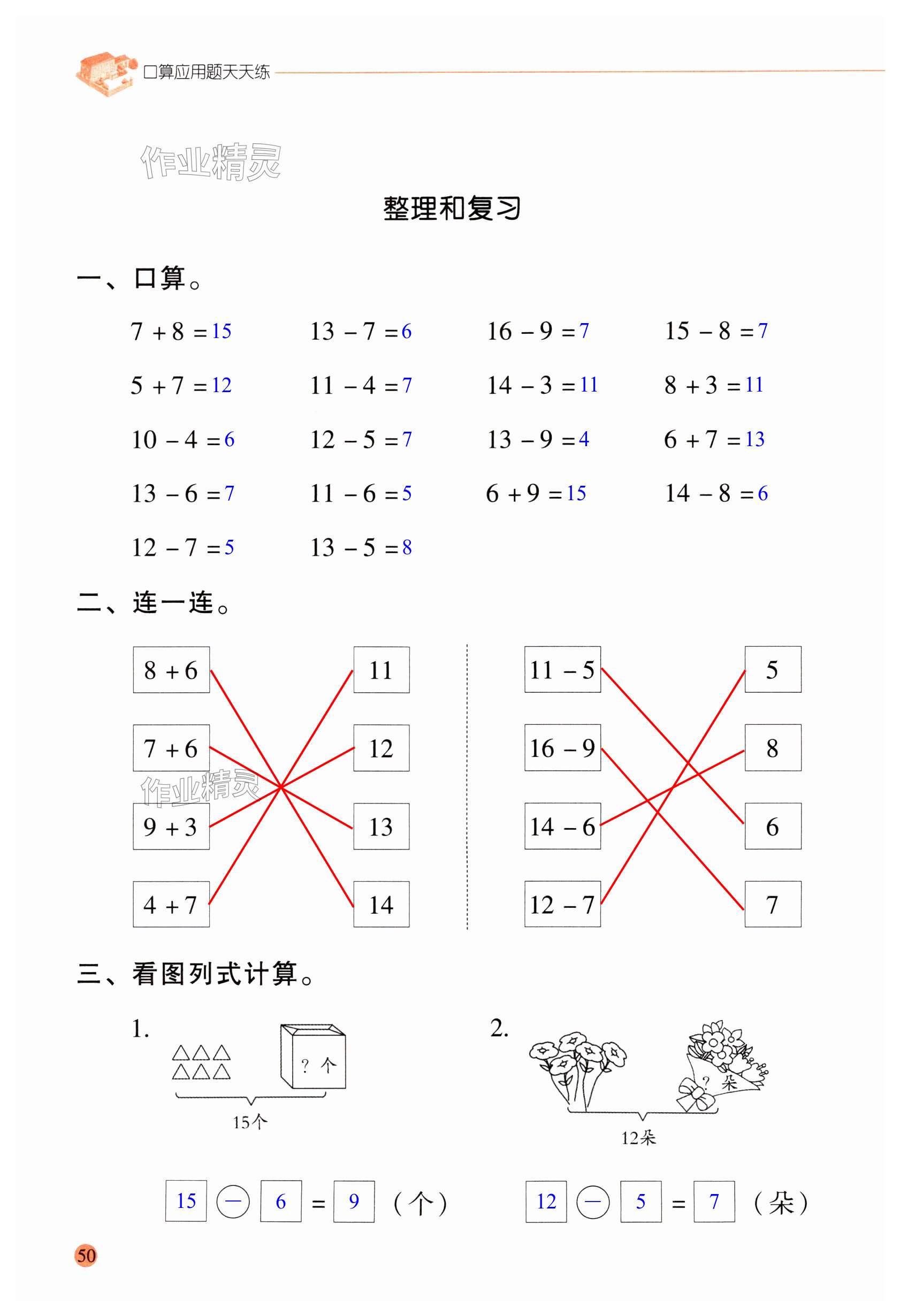 注:目前有些书本章节名称可能整理的还不是很完善,但都是按照顺序排列的,请同学们按照顺序仔细查找。练习册 2024年晨光全优口算应用题天天练一年级数学下册人教版 答案主要是用来给同学们做完题方便对答案用的,请勿直接抄袭。