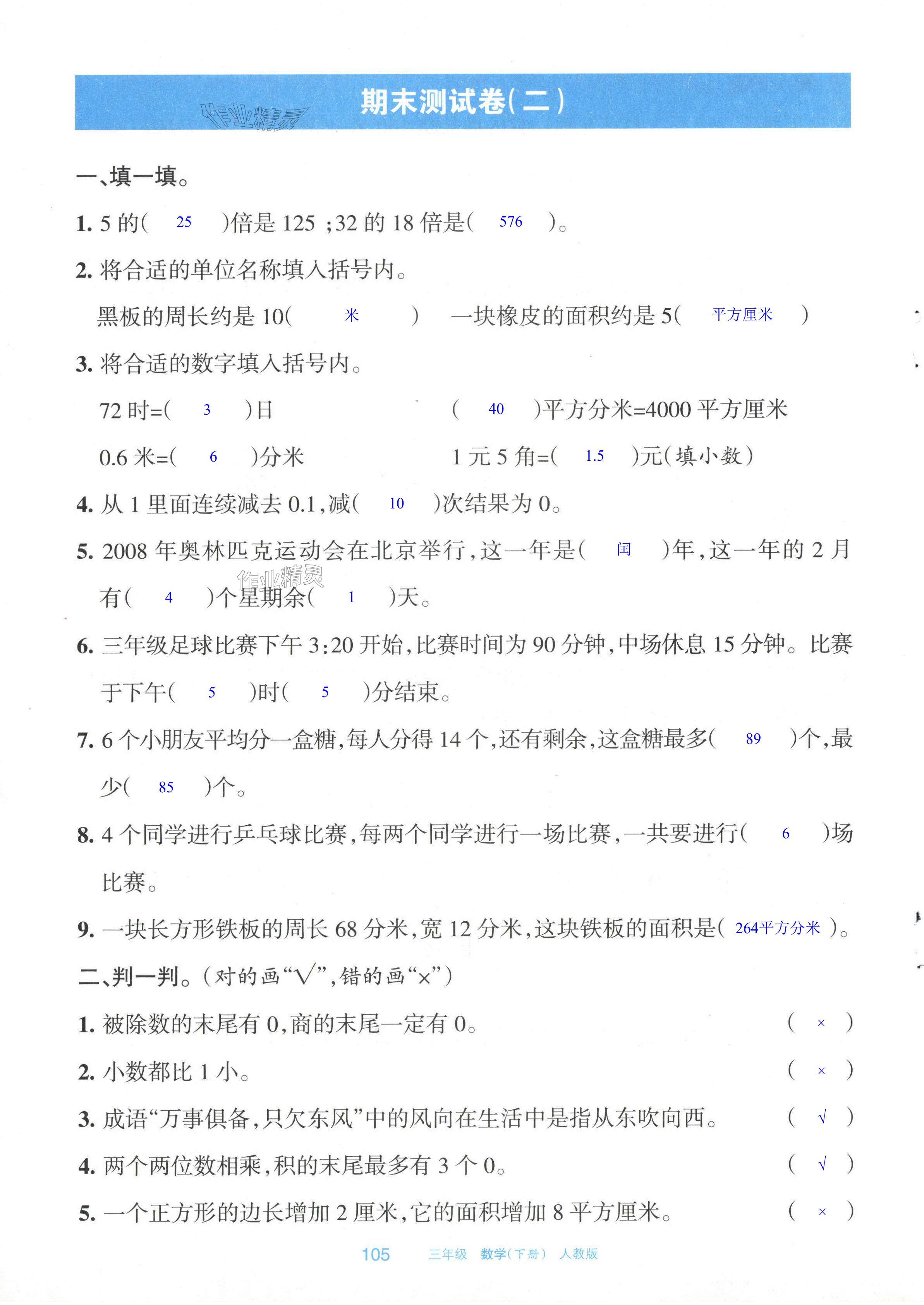 注:目前有些书本章节名称可能整理的还不是很完善,但都是按照顺序排列的,请同学们按照顺序仔细查找。练习册 2024年学习之友三年级数学下册人教版 答案主要是用来给同学们做完题方便对答案用的,请勿直接抄袭。
