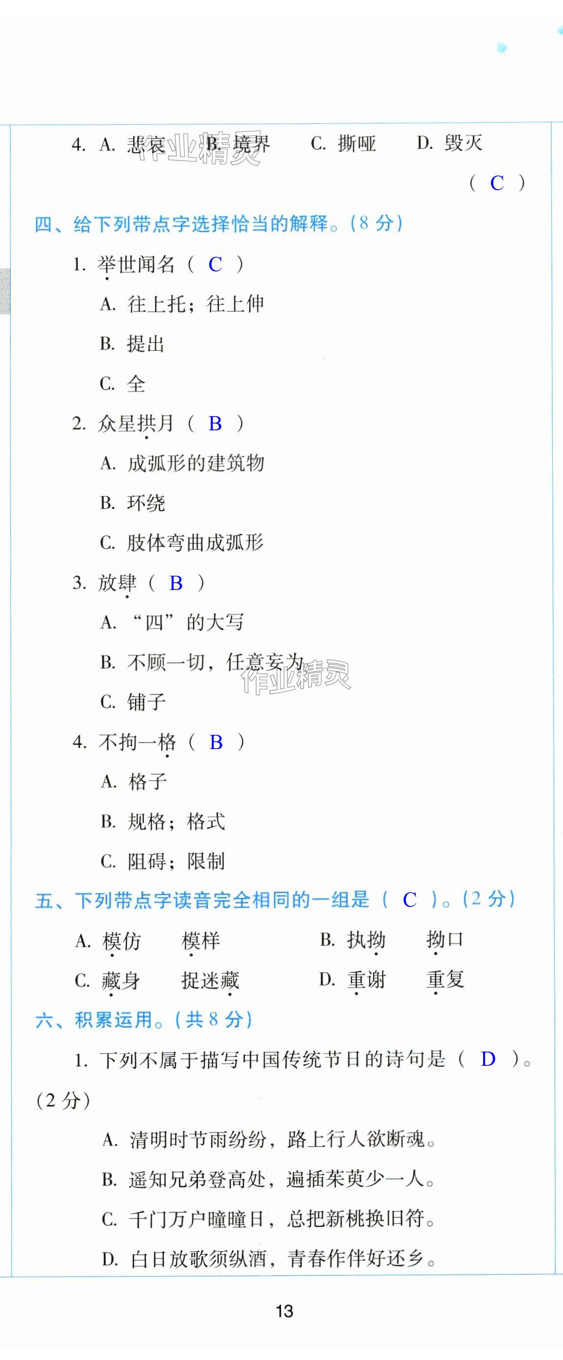 注:目前有些书本章节名称可能整理的还不是很完善,但都是按照顺序排列的,请同学们按照顺序仔细查找。练习册 2024年云南省标准教辅同步指导训练与检测配套测试卷五年级语文下册人教版 答案主要是用来给同学们做完题方便对答案用的,请勿直接抄袭。