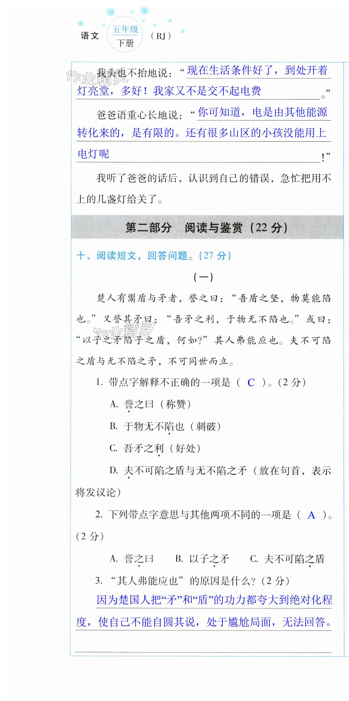 注:目前有些书本章节名称可能整理的还不是很完善,但都是按照顺序排列的,请同学们按照顺序仔细查找。练习册 2024年云南省标准教辅同步指导训练与检测配套测试卷五年级语文下册人教版 答案主要是用来给同学们做完题方便对答案用的,请勿直接抄袭。