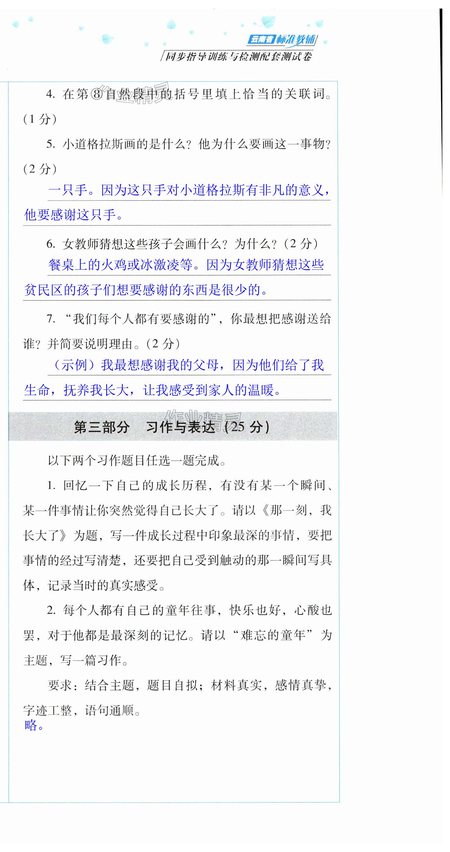 注:目前有些书本章节名称可能整理的还不是很完善,但都是按照顺序排列的,请同学们按照顺序仔细查找。练习册 2024年云南省标准教辅同步指导训练与检测配套测试卷五年级语文下册人教版 答案主要是用来给同学们做完题方便对答案用的,请勿直接抄袭。
