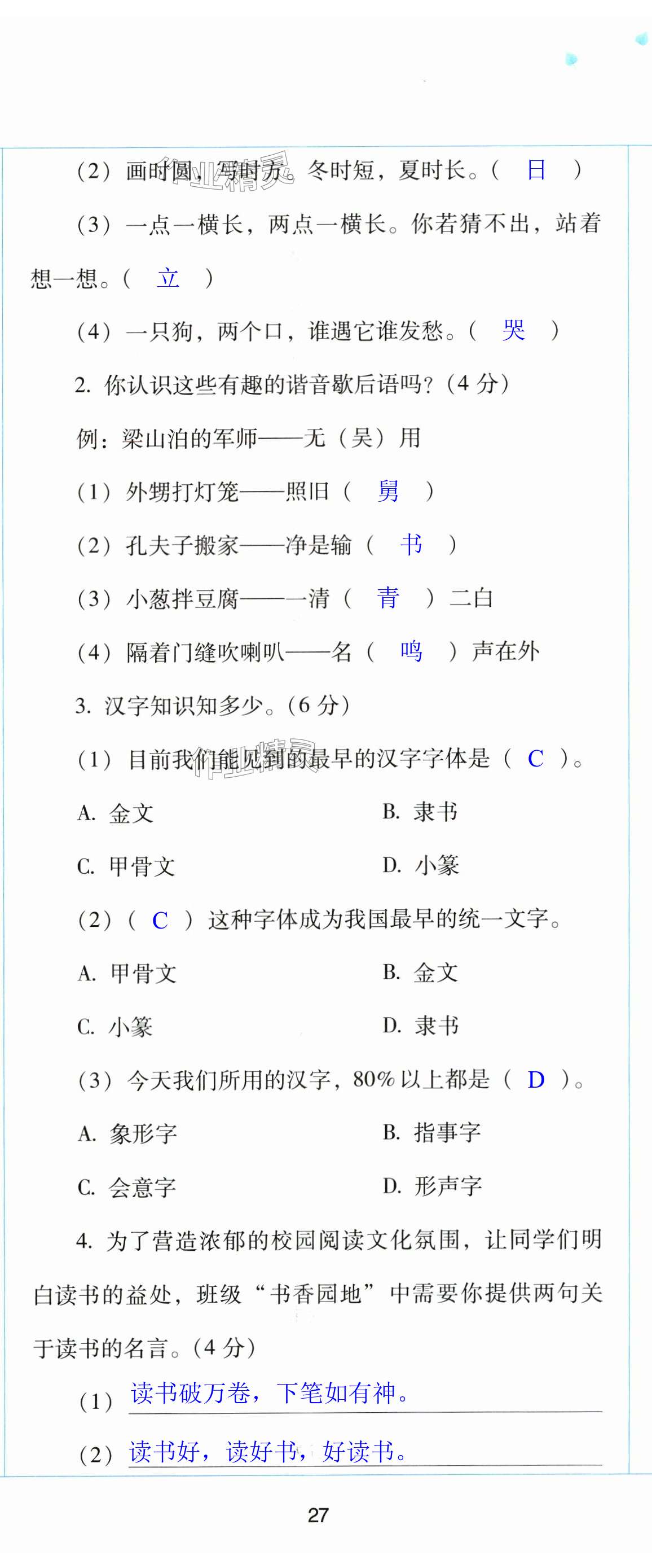 注:目前有些书本章节名称可能整理的还不是很完善,但都是按照顺序排列的,请同学们按照顺序仔细查找。练习册 2024年云南省标准教辅同步指导训练与检测配套测试卷五年级语文下册人教版 答案主要是用来给同学们做完题方便对答案用的,请勿直接抄袭。