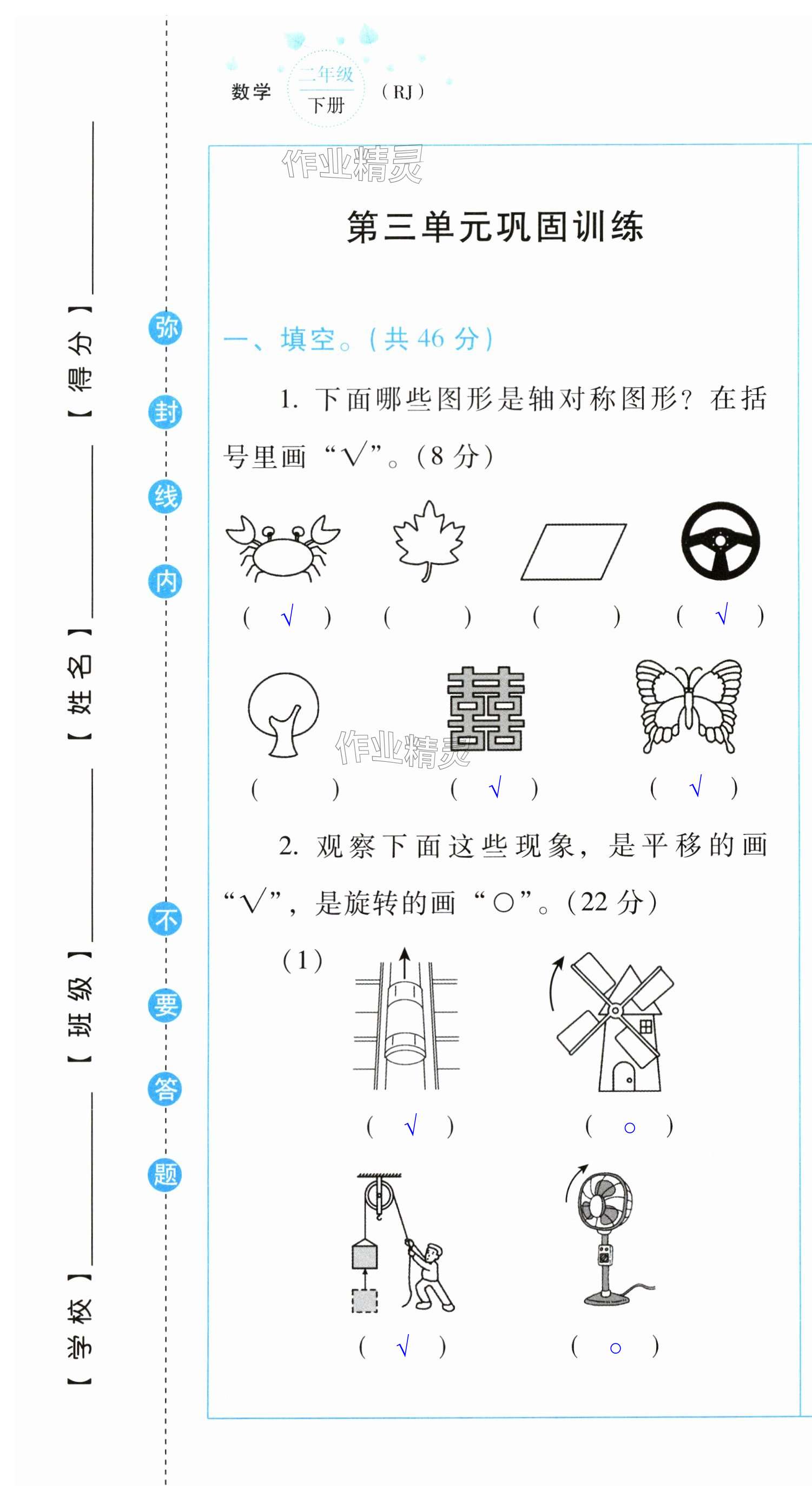 注:目前有些书本章节名称可能整理的还不是很完善,但都是按照顺序排列的,请同学们按照顺序仔细查找。练习册 2024年云南省标准教辅同步指导训练与检测配套测试卷二年级数学下册人教版 答案主要是用来给同学们做完题方便对答案用的,请勿直接抄袭。
