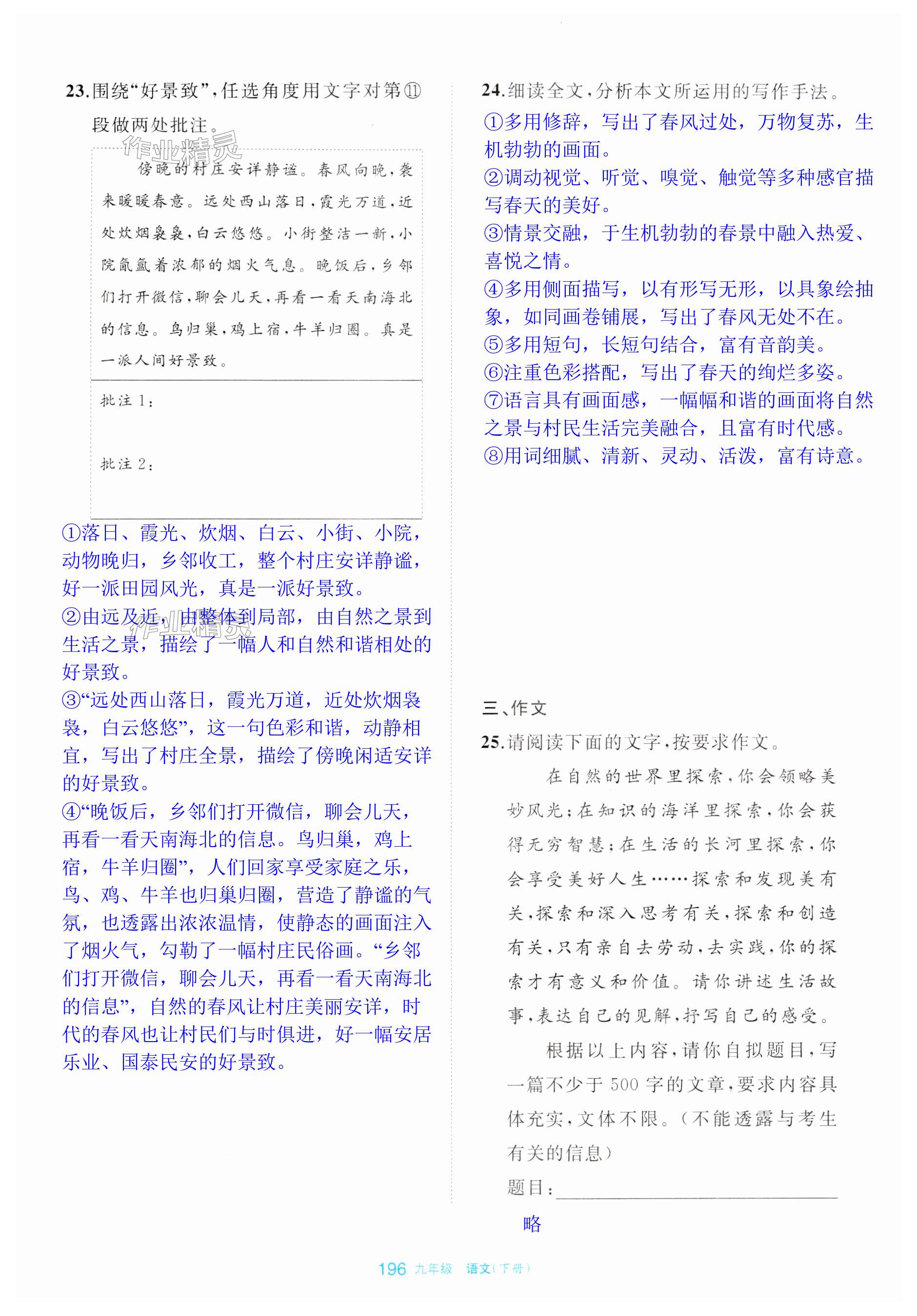 注:目前有些书本章节名称可能整理的还不是很完善,但都是按照顺序排列的,请同学们按照顺序仔细查找。练习册 2024年学习之友九年级语文下册人教版 答案主要是用来给同学们做完题方便对答案用的,请勿直接抄袭。