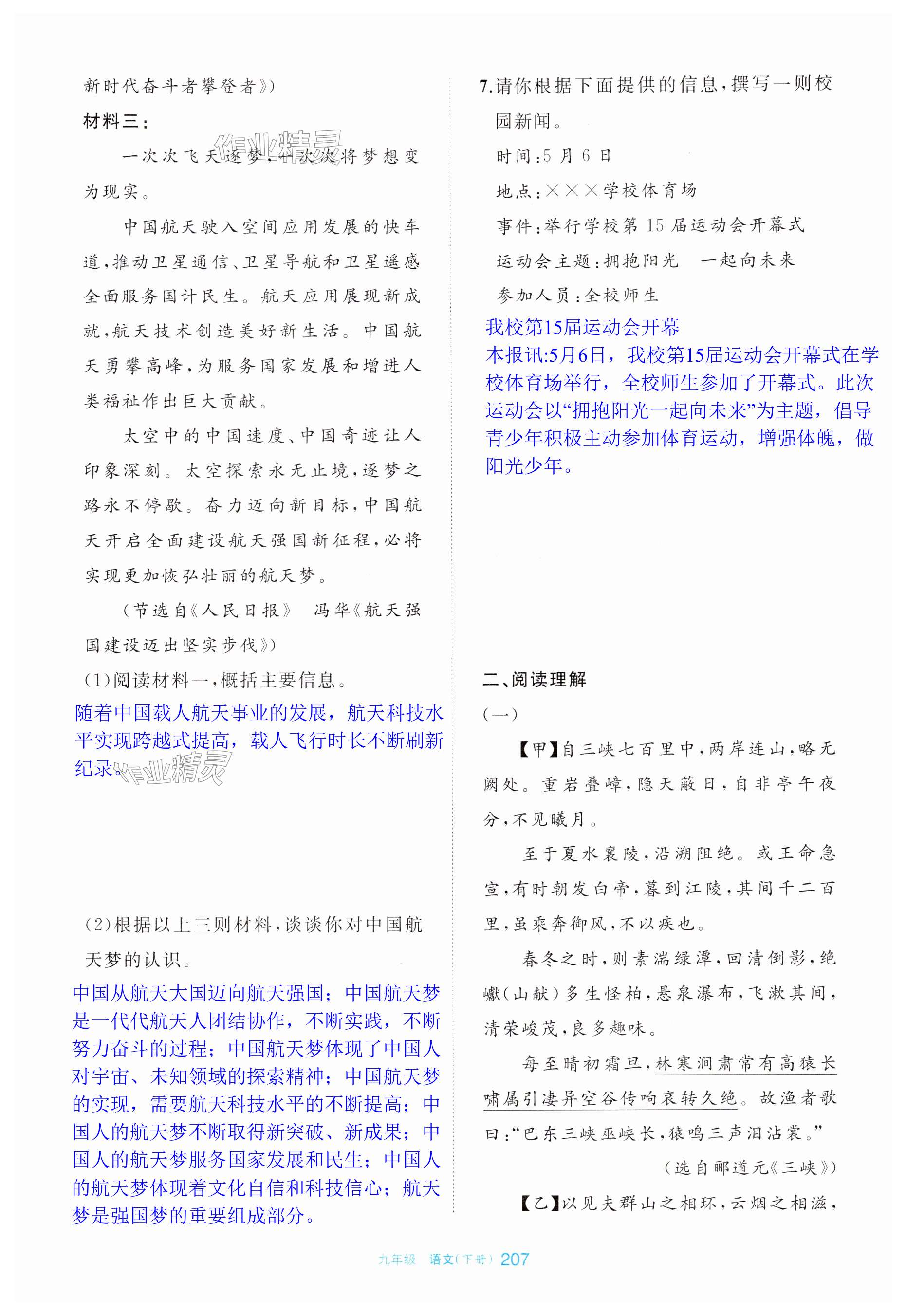 注:目前有些书本章节名称可能整理的还不是很完善,但都是按照顺序排列的,请同学们按照顺序仔细查找。练习册 2024年学习之友九年级语文下册人教版 答案主要是用来给同学们做完题方便对答案用的,请勿直接抄袭。
