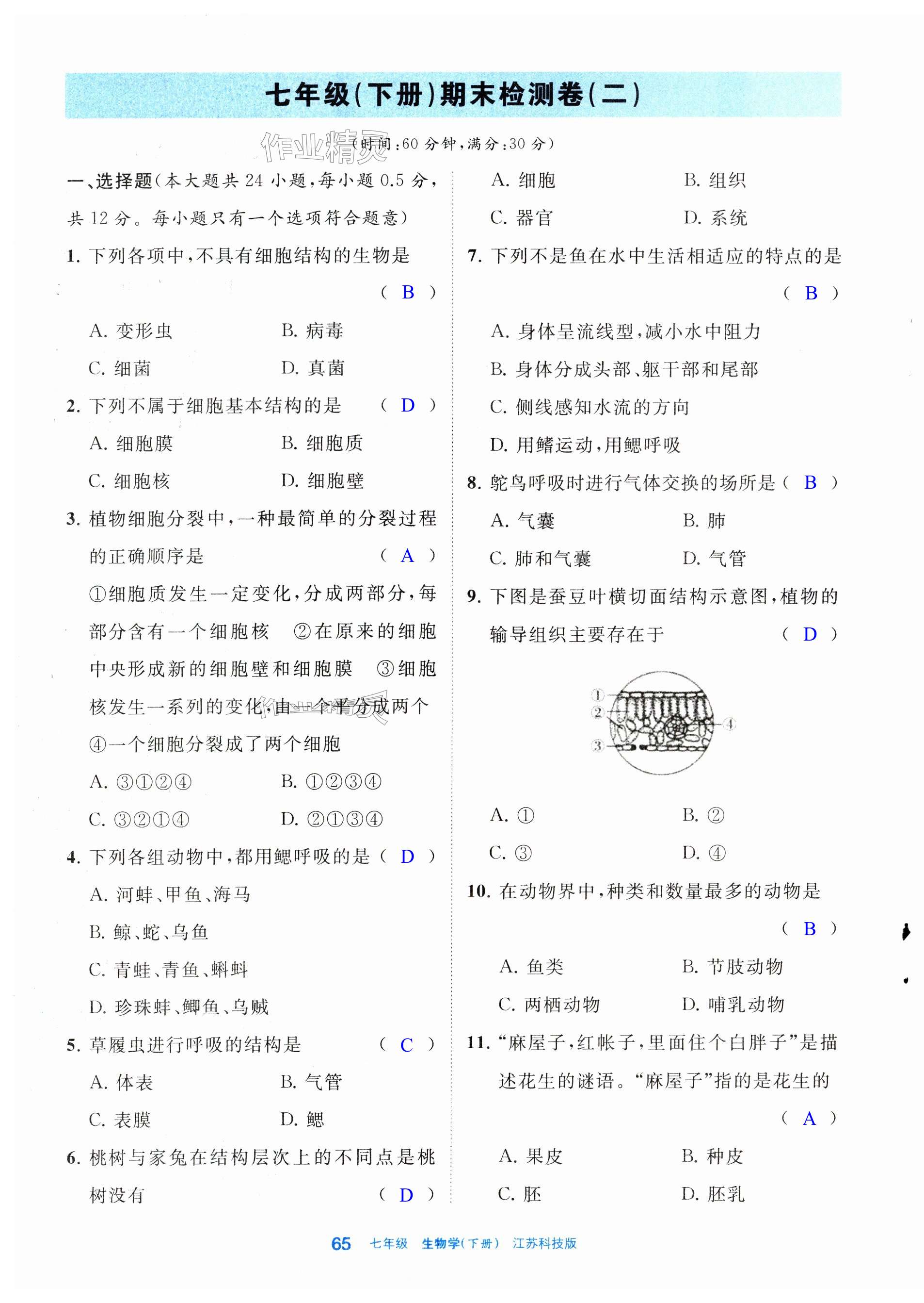 注:目前有些书本章节名称可能整理的还不是很完善,但都是按照顺序排列的,请同学们按照顺序仔细查找。练习册 2024年学习之友七年级生物下册苏科版 答案主要是用来给同学们做完题方便对答案用的,请勿直接抄袭。