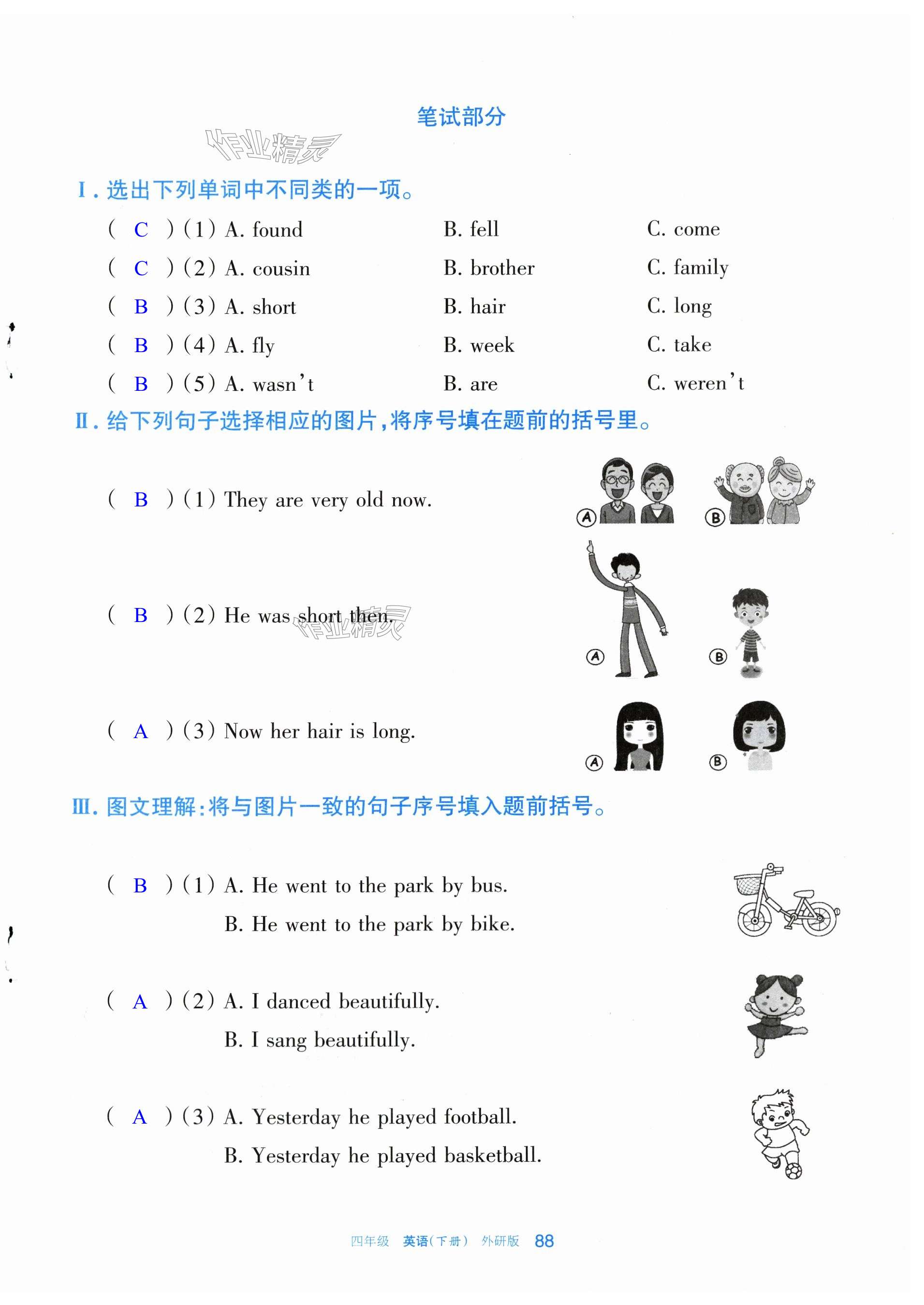注:目前有些书本章节名称可能整理的还不是很完善,但都是按照顺序排列的,请同学们按照顺序仔细查找。练习册 2024年学习之友四年级英语下册外研版 答案主要是用来给同学们做完题方便对答案用的,请勿直接抄袭。
