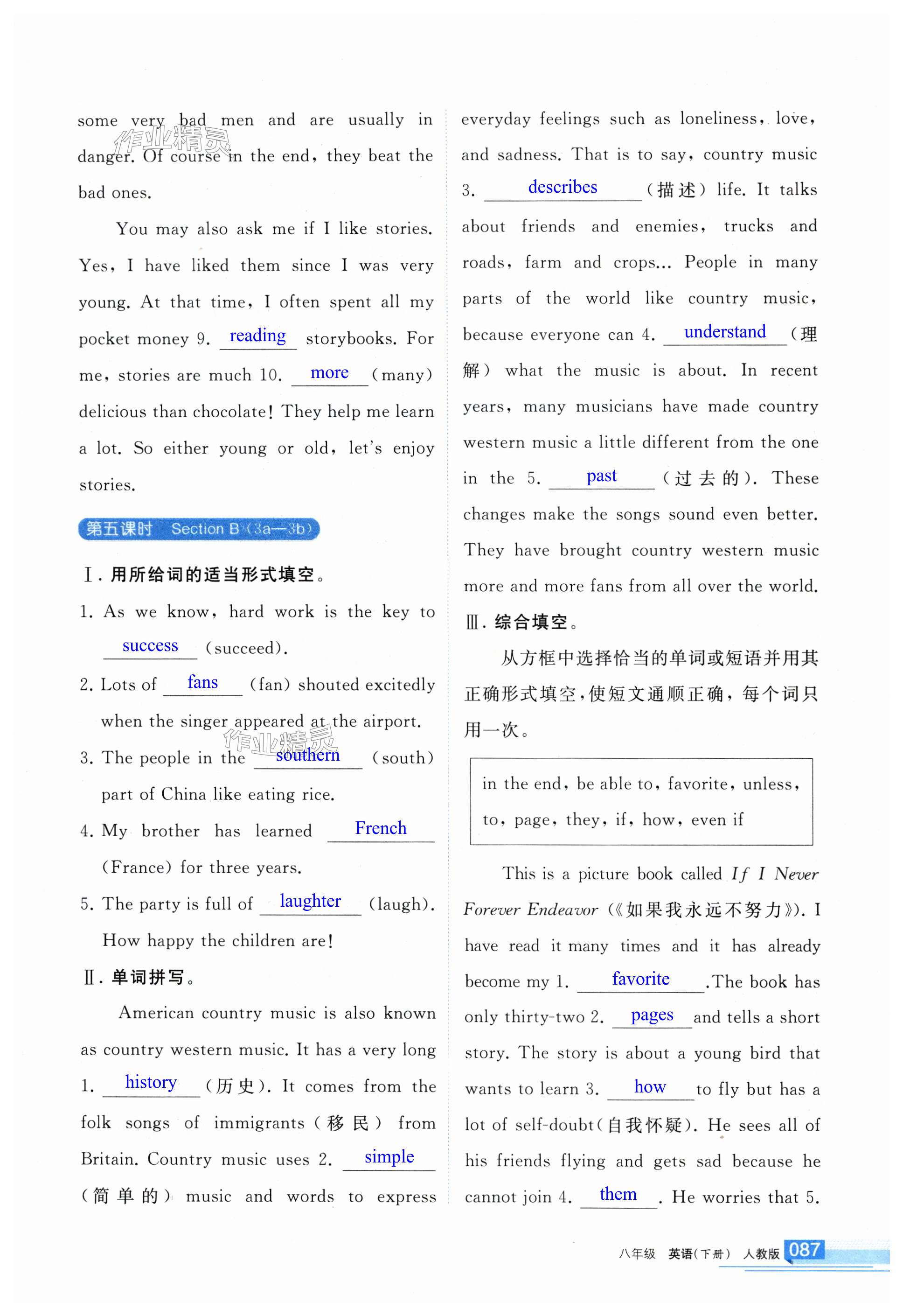 注:目前有些书本章节名称可能整理的还不是很完善,但都是按照顺序排列的,请同学们按照顺序仔细查找。练习册 2024年学习之友八年级英语下册人教版 答案主要是用来给同学们做完题方便对答案用的,请勿直接抄袭。