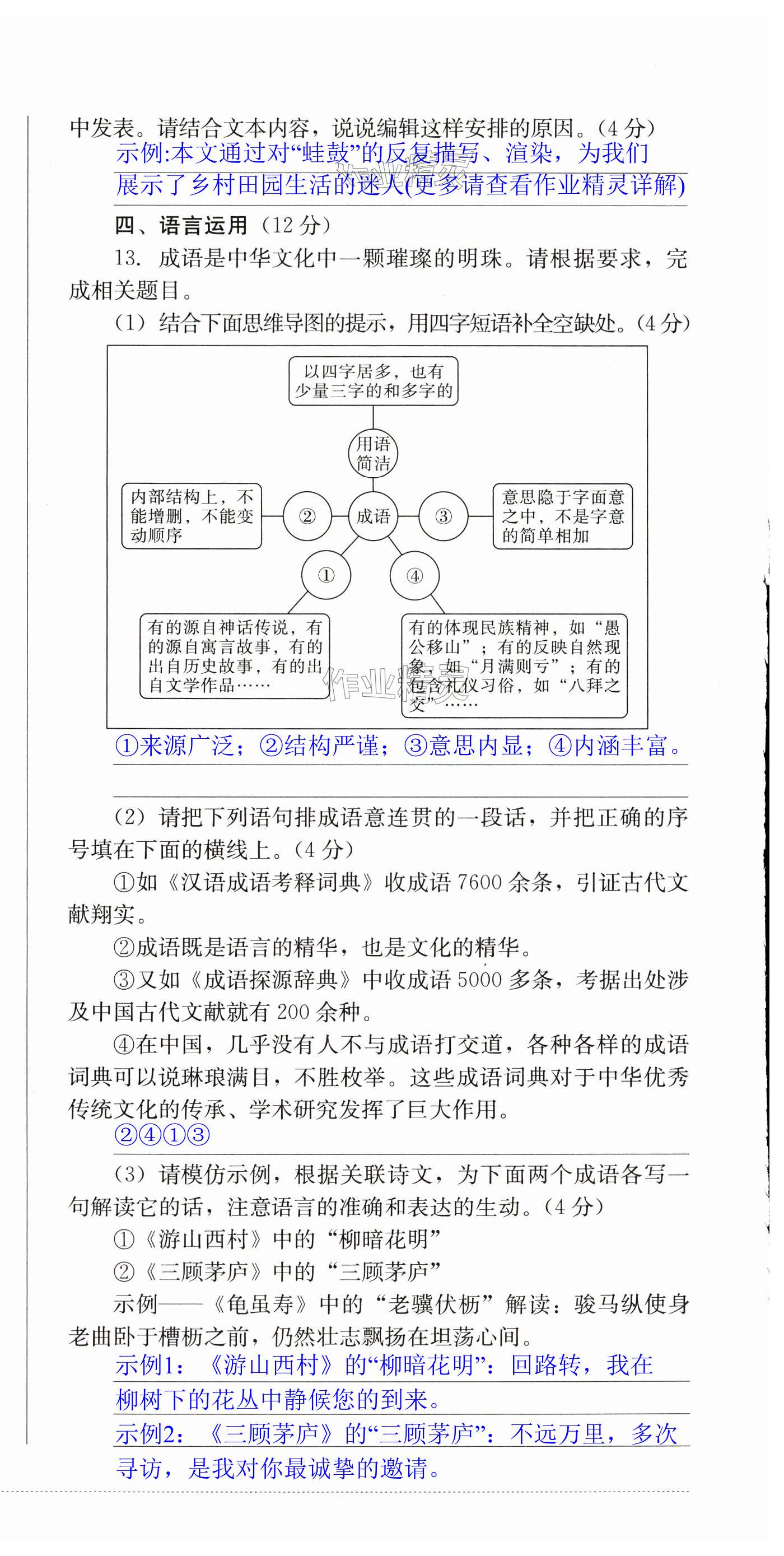 注:目前有些书本章节名称可能整理的还不是很完善,但都是按照顺序排列的,请同学们按照顺序仔细查找。练习册 2024年学情点评四川教育出版社八年级语文下册人教版 答案主要是用来给同学们做完题方便对答案用的,请勿直接抄袭。