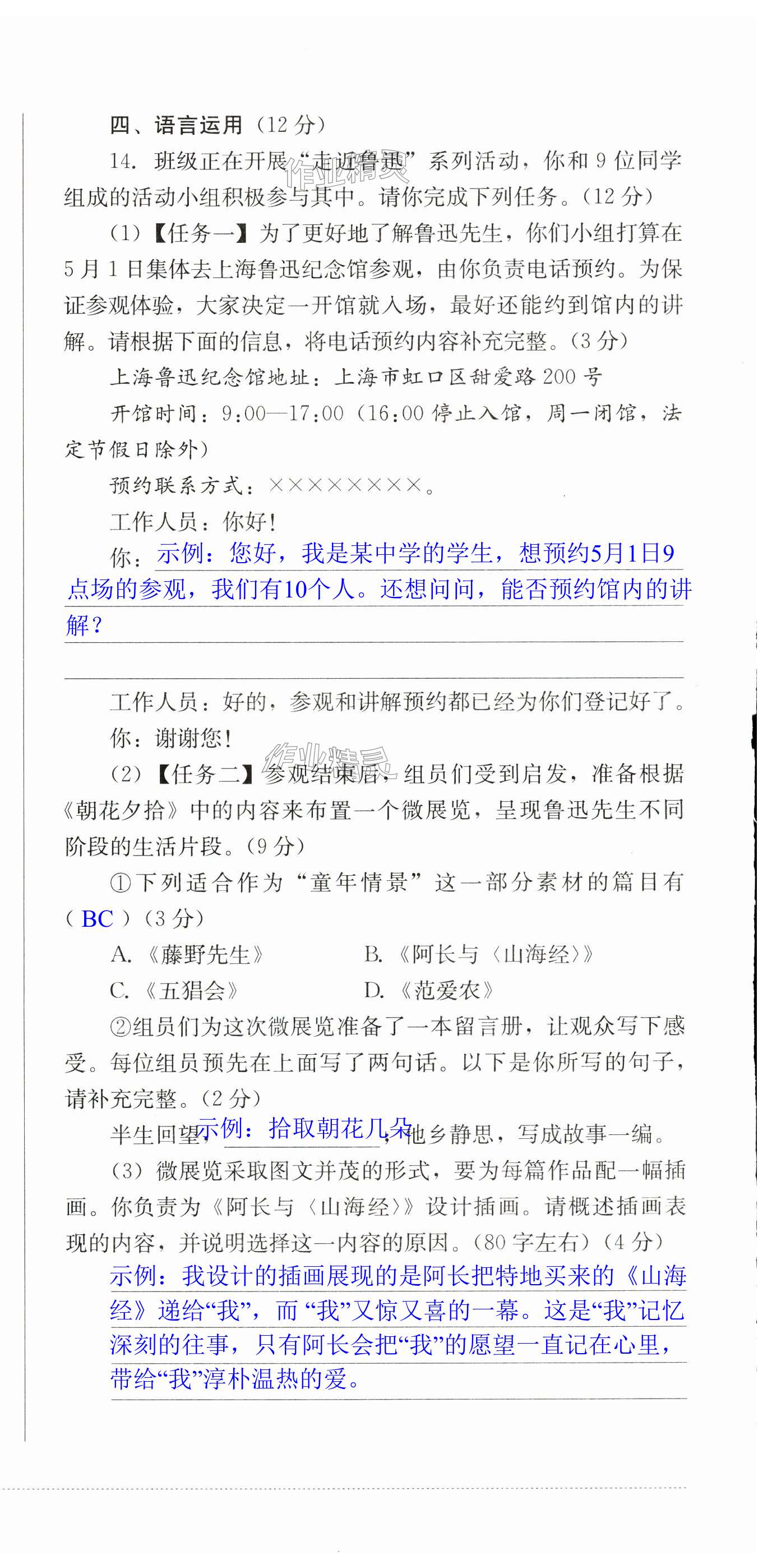 注:目前有些书本章节名称可能整理的还不是很完善,但都是按照顺序排列的,请同学们按照顺序仔细查找。练习册 2024年学情点评四川教育出版社七年级语文下册人教版 答案主要是用来给同学们做完题方便对答案用的,请勿直接抄袭。