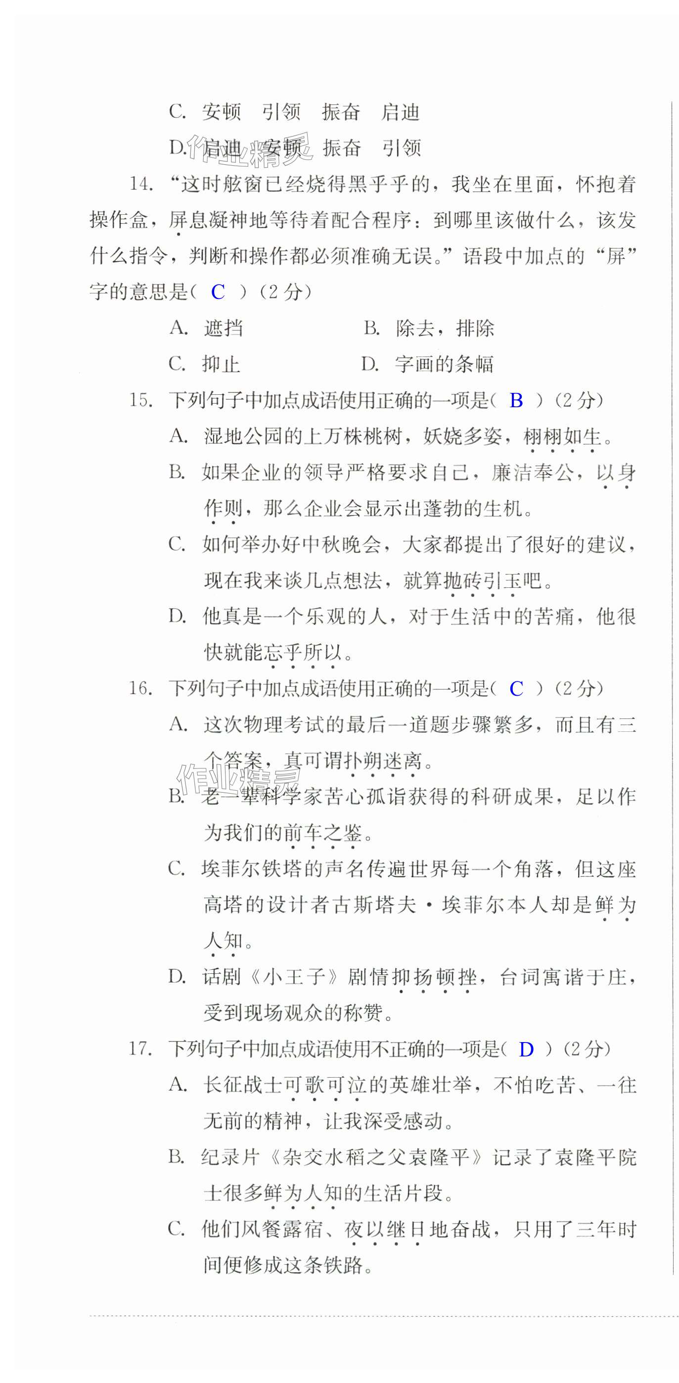注:目前有些书本章节名称可能整理的还不是很完善,但都是按照顺序排列的,请同学们按照顺序仔细查找。练习册 2024年学情点评四川教育出版社七年级语文下册人教版 答案主要是用来给同学们做完题方便对答案用的,请勿直接抄袭。