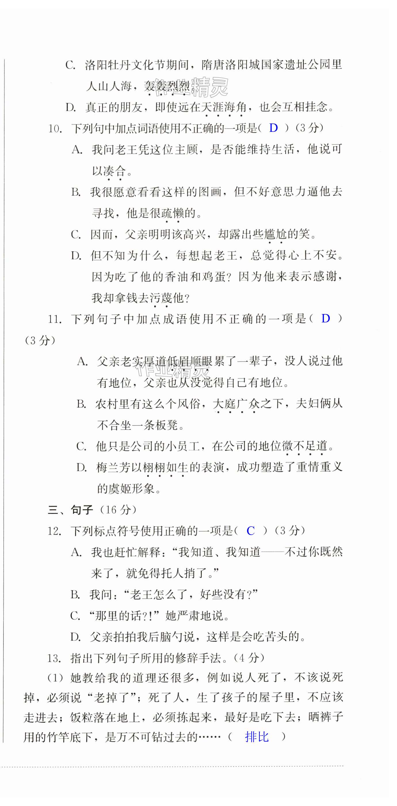 注:目前有些书本章节名称可能整理的还不是很完善,但都是按照顺序排列的,请同学们按照顺序仔细查找。练习册 2024年学情点评四川教育出版社七年级语文下册人教版 答案主要是用来给同学们做完题方便对答案用的,请勿直接抄袭。