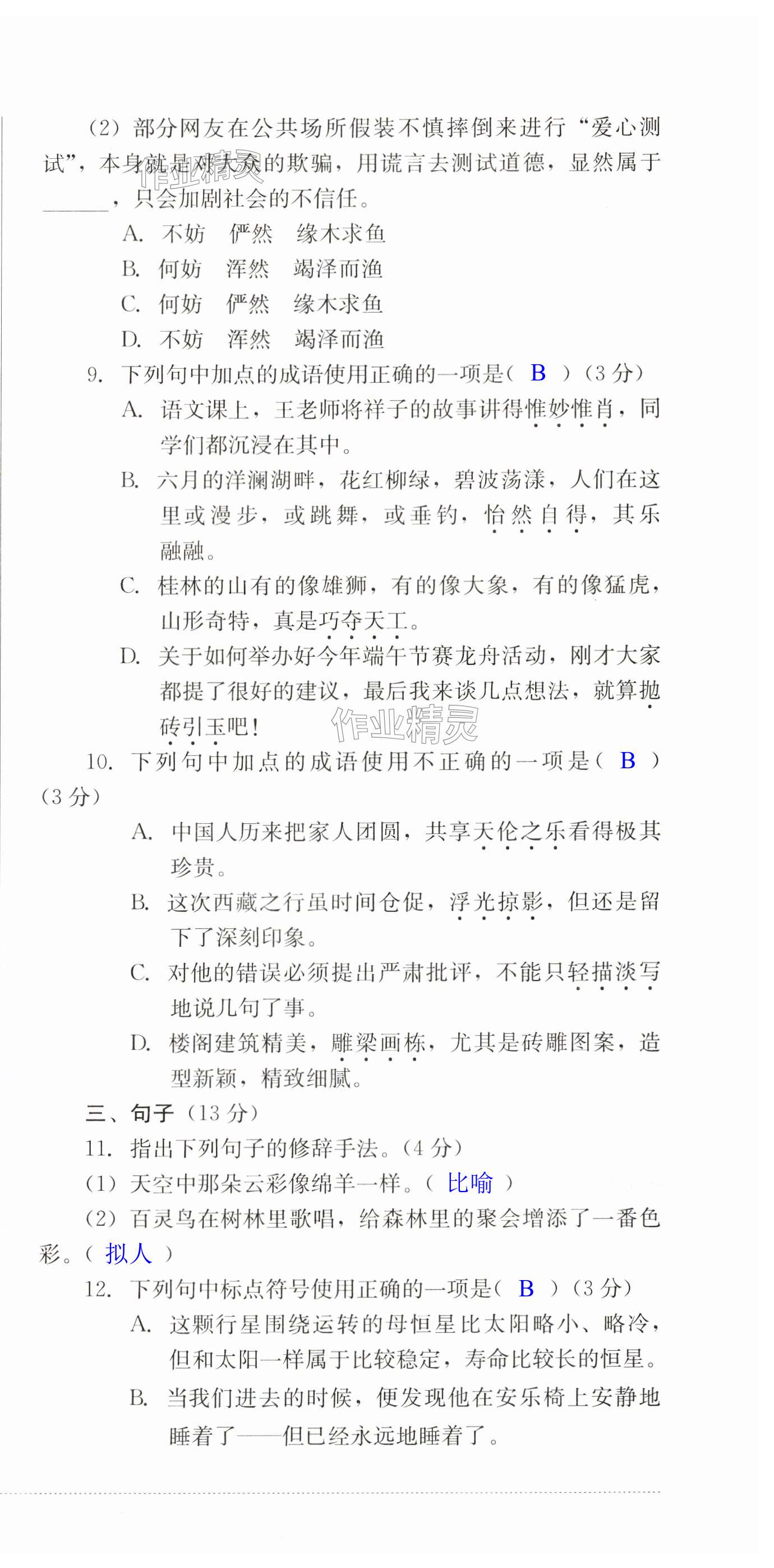注:目前有些书本章节名称可能整理的还不是很完善,但都是按照顺序排列的,请同学们按照顺序仔细查找。练习册 2024年学情点评四川教育出版社七年级语文下册人教版 答案主要是用来给同学们做完题方便对答案用的,请勿直接抄袭。