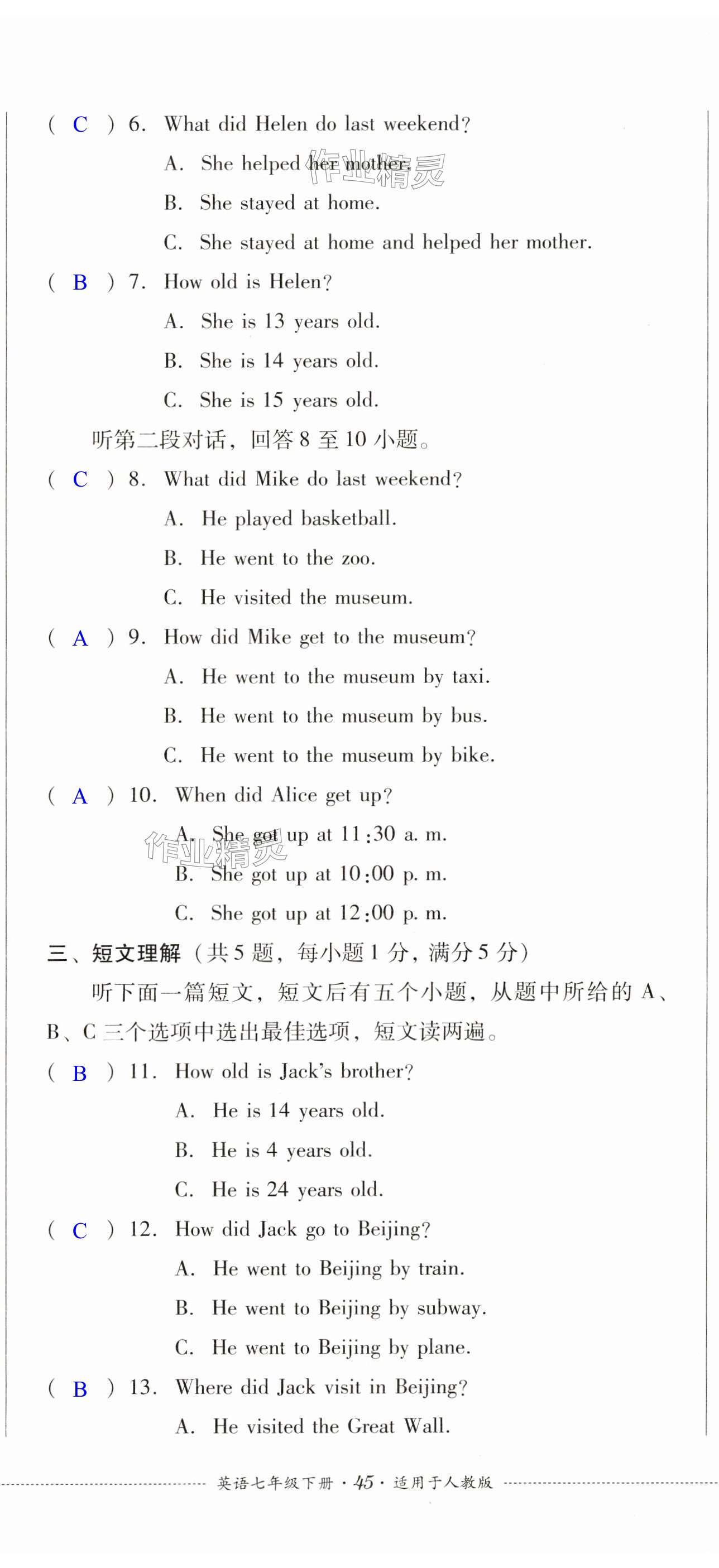 注:目前有些书本章节名称可能整理的还不是很完善,但都是按照顺序排列的,请同学们按照顺序仔细查找。练习册 2024年学情点评四川教育出版社七年级英语下册人教版 答案主要是用来给同学们做完题方便对答案用的,请勿直接抄袭。