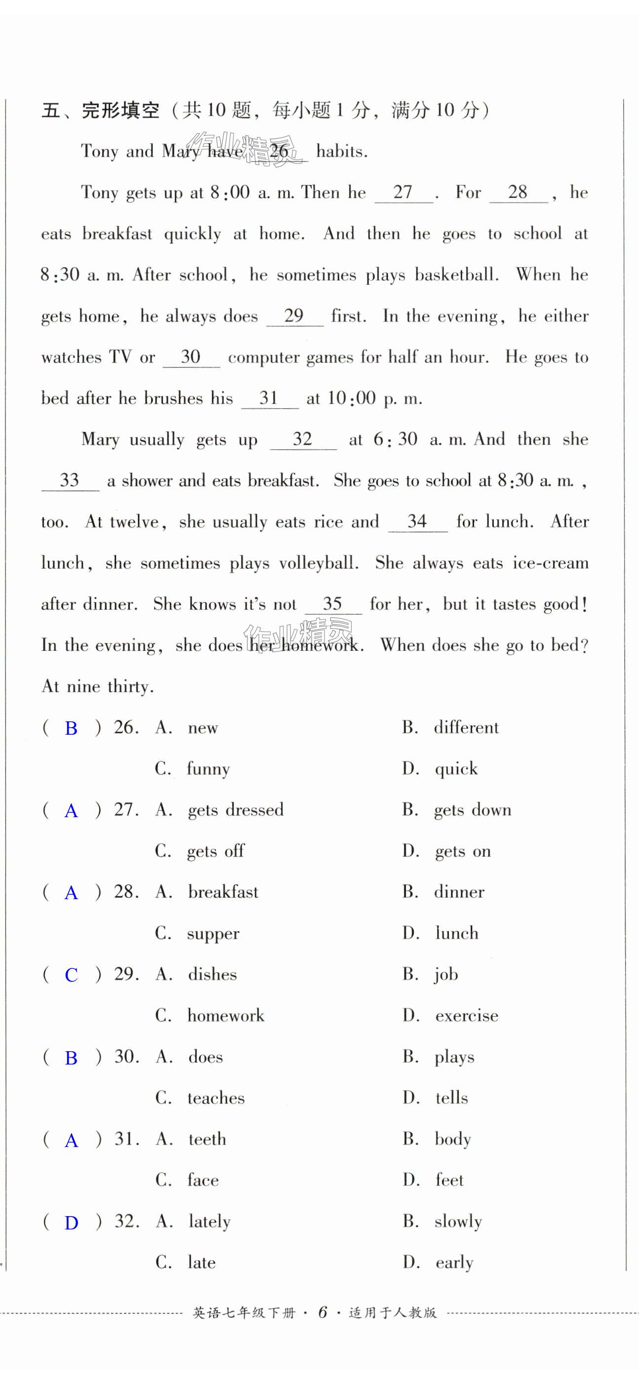 注:目前有些书本章节名称可能整理的还不是很完善,但都是按照顺序排列的,请同学们按照顺序仔细查找。练习册 2024年学情点评四川教育出版社七年级英语下册人教版 答案主要是用来给同学们做完题方便对答案用的,请勿直接抄袭。