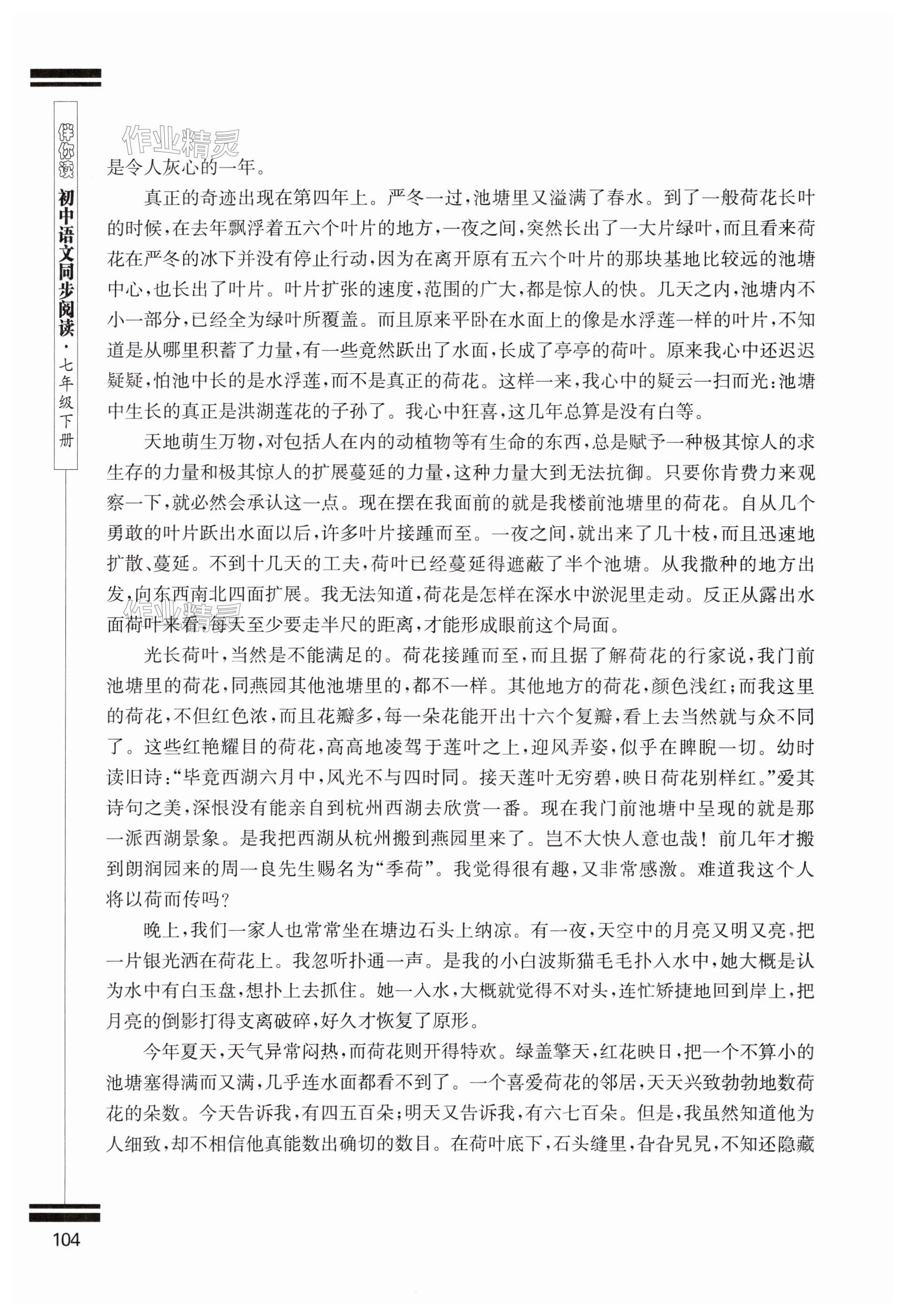 注:目前有些书本章节名称可能整理的还不是很完善,但都是按照顺序排列的,请同学们按照顺序仔细查找。练习册 2024年初中语文同步阅读七年级下册人教版 答案主要是用来给同学们做完题方便对答案用的,请勿直接抄袭。