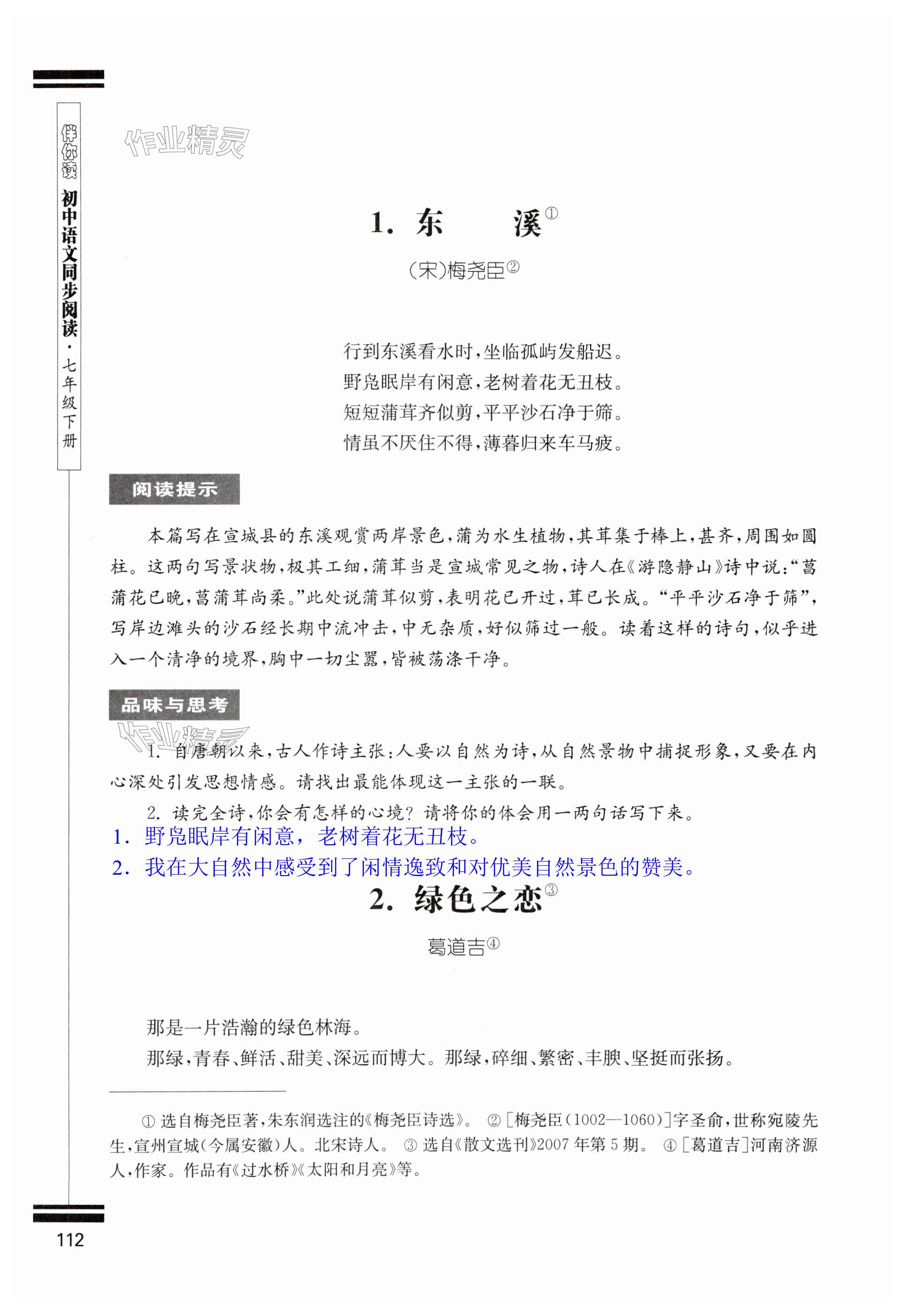 注:目前有些书本章节名称可能整理的还不是很完善,但都是按照顺序排列的,请同学们按照顺序仔细查找。练习册 2024年初中语文同步阅读七年级下册人教版 答案主要是用来给同学们做完题方便对答案用的,请勿直接抄袭。