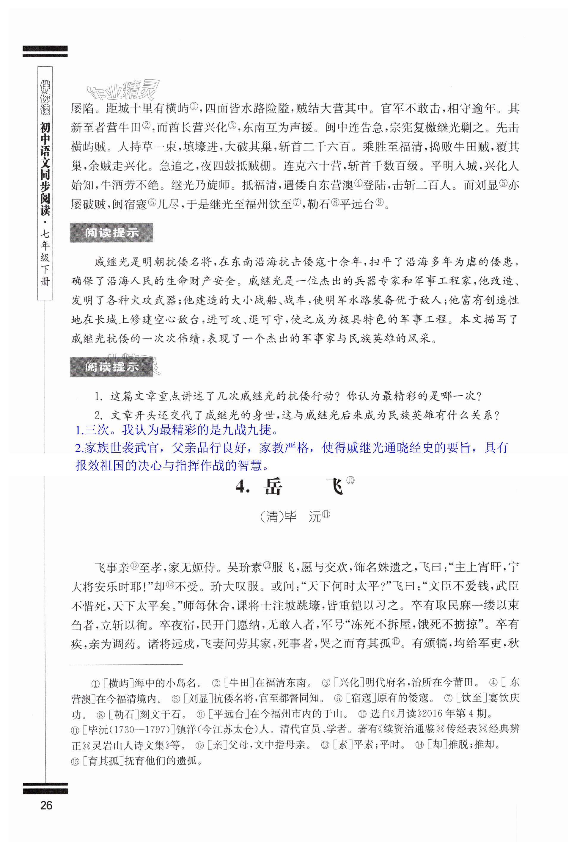 注:目前有些书本章节名称可能整理的还不是很完善,但都是按照顺序排列的,请同学们按照顺序仔细查找。练习册 2024年初中语文同步阅读七年级下册人教版 答案主要是用来给同学们做完题方便对答案用的,请勿直接抄袭。