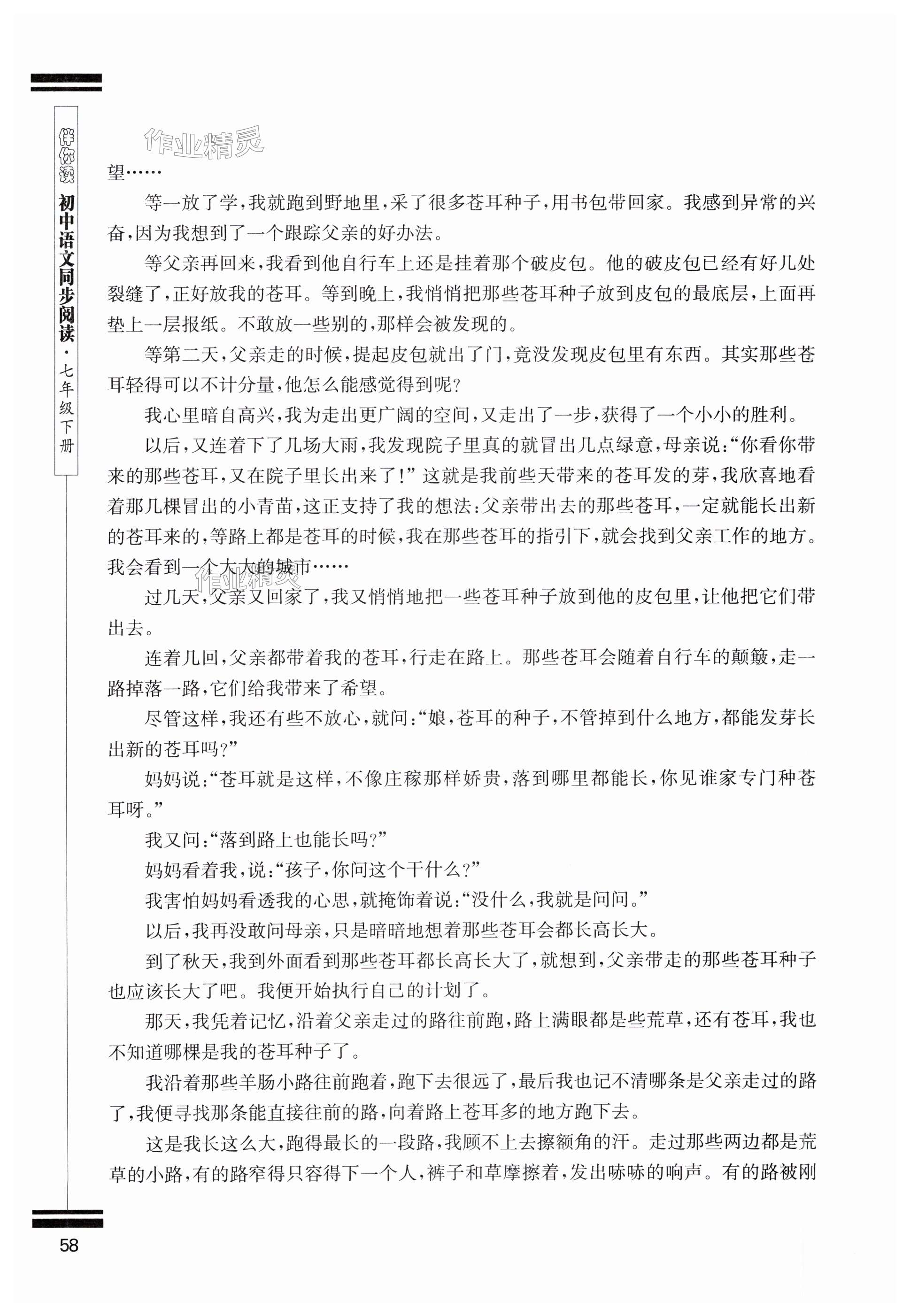 注:目前有些书本章节名称可能整理的还不是很完善,但都是按照顺序排列的,请同学们按照顺序仔细查找。练习册 2024年初中语文同步阅读七年级下册人教版 答案主要是用来给同学们做完题方便对答案用的,请勿直接抄袭。