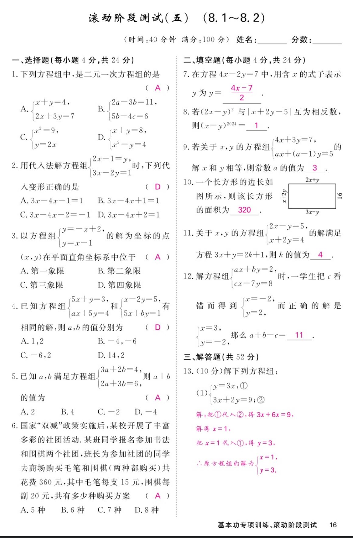注:目前有些书本章节名称可能整理的还不是很完善,但都是按照顺序排列的,请同学们按照顺序仔细查找。练习册 2024年课堂点睛七年级数学下册人教版宁夏专版 答案主要是用来给同学们做完题方便对答案用的,请勿直接抄袭。