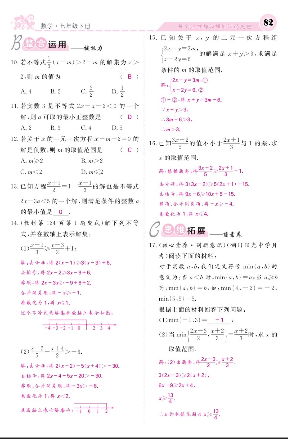 注:目前有些书本章节名称可能整理的还不是很完善,但都是按照顺序排列的,请同学们按照顺序仔细查找。练习册 2024年课堂点睛七年级数学下册人教版宁夏专版 答案主要是用来给同学们做完题方便对答案用的,请勿直接抄袭。