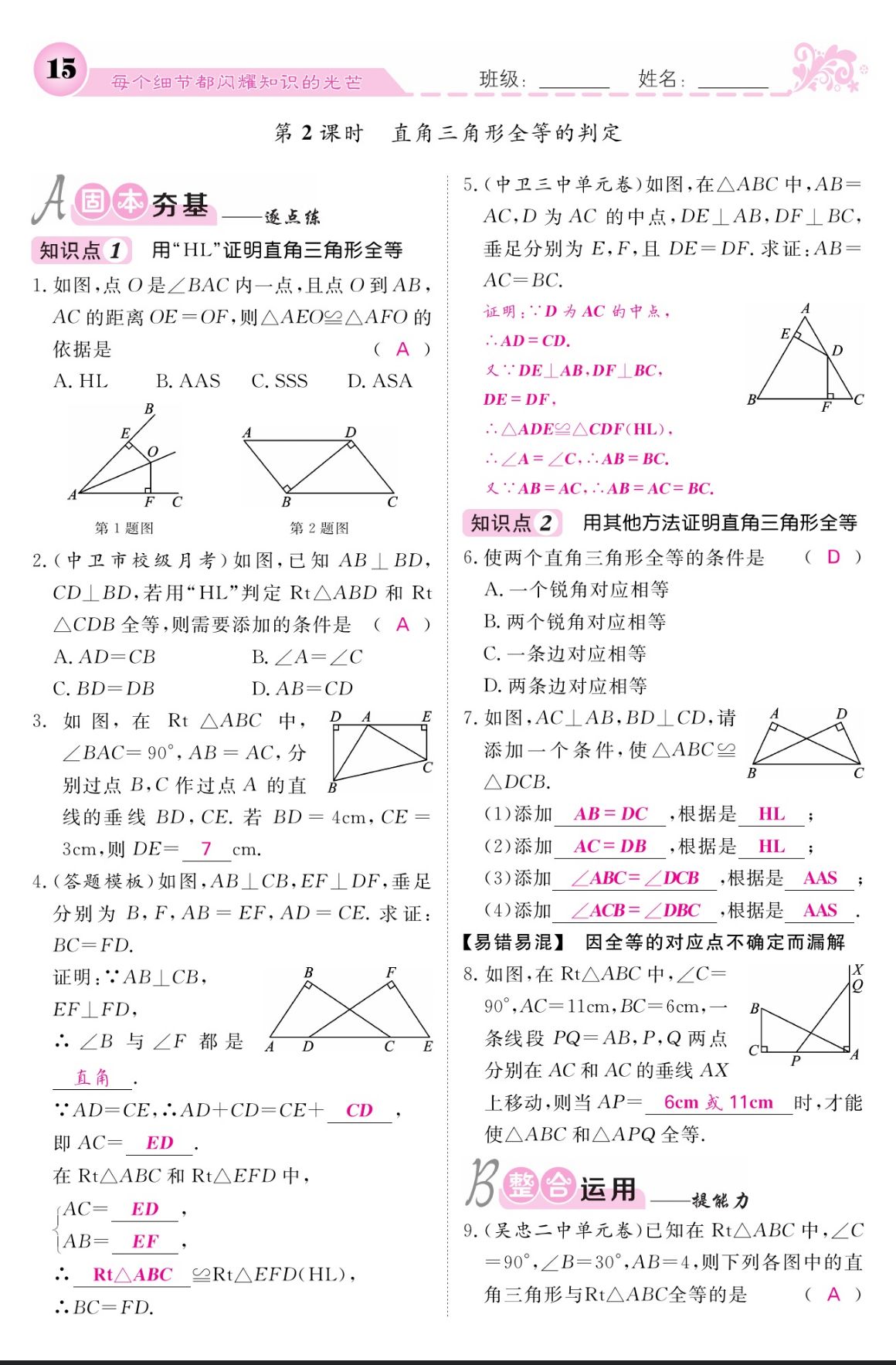 注:目前有些书本章节名称可能整理的还不是很完善,但都是按照顺序排列的,请同学们按照顺序仔细查找。练习册 2024年课堂点睛八年级数学下册北师大版宁夏专版 答案主要是用来给同学们做完题方便对答案用的,请勿直接抄袭。