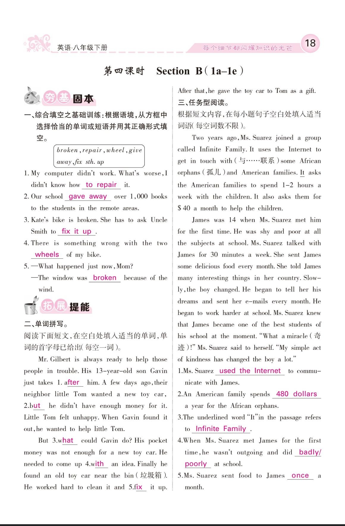 注:目前有些书本章节名称可能整理的还不是很完善,但都是按照顺序排列的,请同学们按照顺序仔细查找。练习册 2024年课堂点睛八年级英语下册人教版宁夏专版 答案主要是用来给同学们做完题方便对答案用的,请勿直接抄袭。