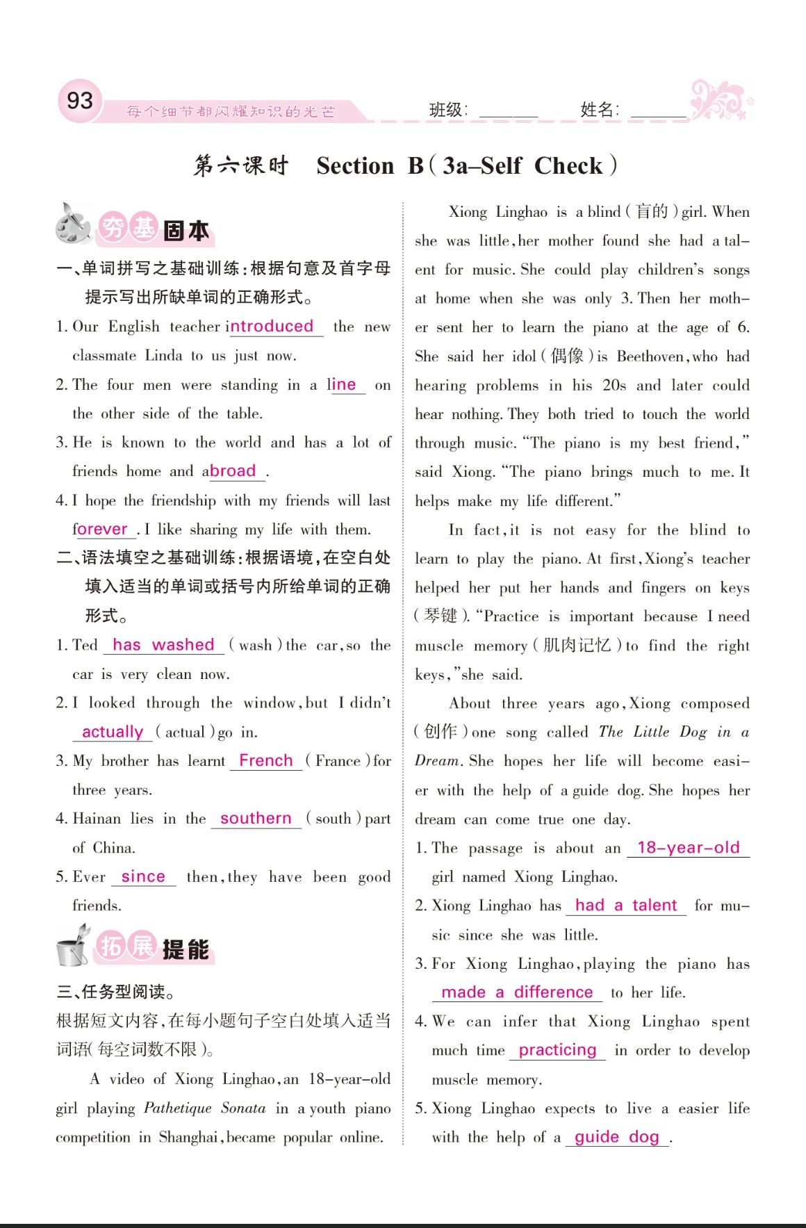 注:目前有些书本章节名称可能整理的还不是很完善,但都是按照顺序排列的,请同学们按照顺序仔细查找。练习册 2024年课堂点睛八年级英语下册人教版宁夏专版 答案主要是用来给同学们做完题方便对答案用的,请勿直接抄袭。