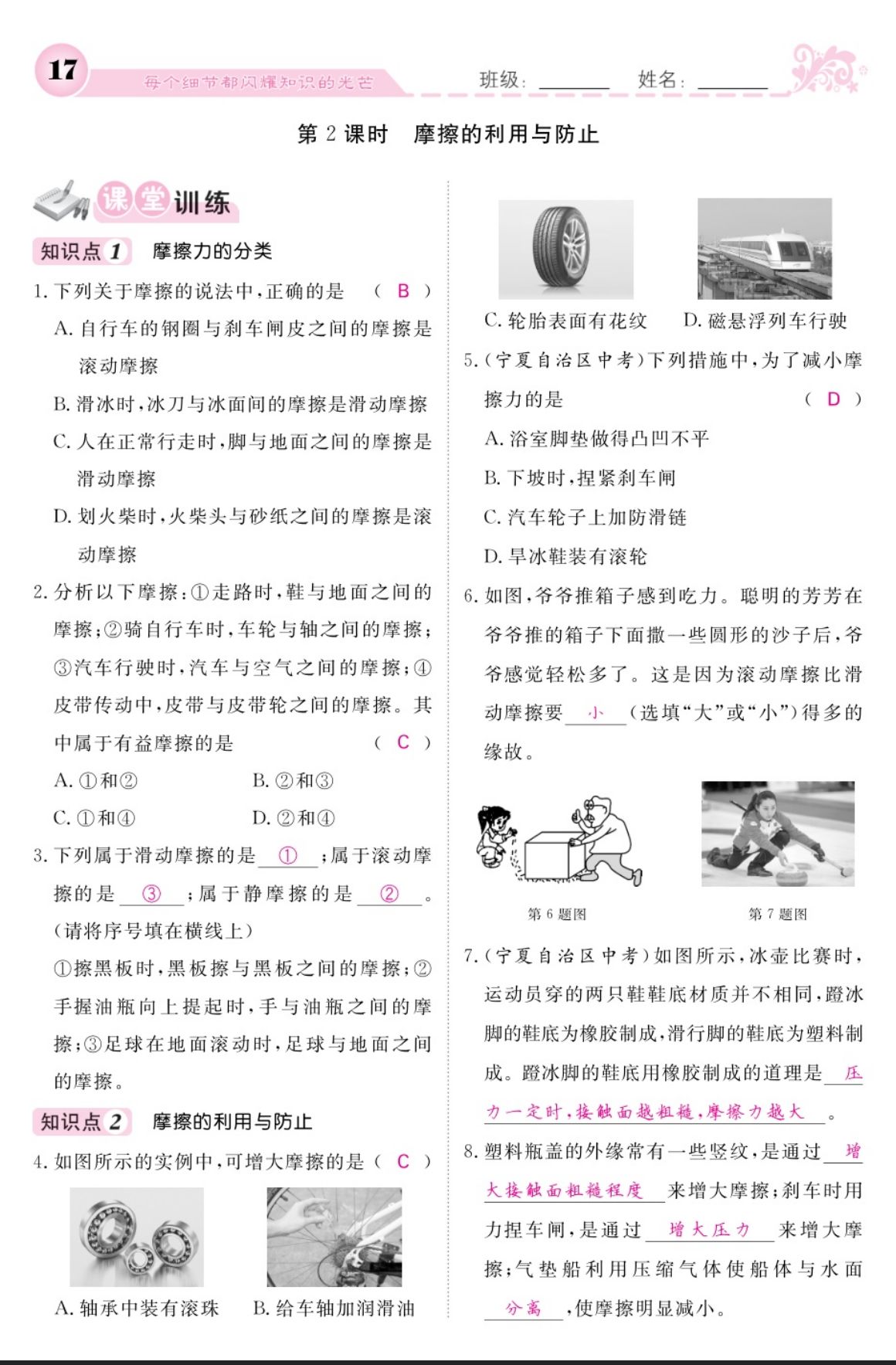 注:目前有些书本章节名称可能整理的还不是很完善,但都是按照顺序排列的,请同学们按照顺序仔细查找。练习册 2024年课堂点睛八年级物理下册人教版宁夏专版 答案主要是用来给同学们做完题方便对答案用的,请勿直接抄袭。
