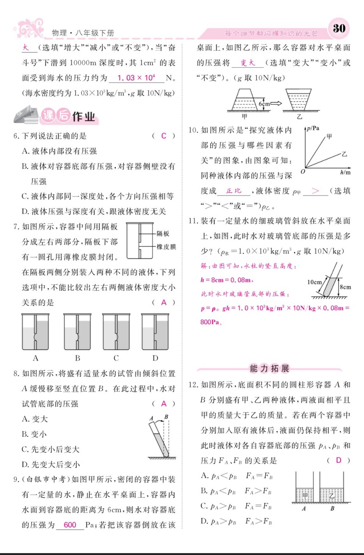 注:目前有些书本章节名称可能整理的还不是很完善,但都是按照顺序排列的,请同学们按照顺序仔细查找。练习册 2024年课堂点睛八年级物理下册人教版宁夏专版 答案主要是用来给同学们做完题方便对答案用的,请勿直接抄袭。