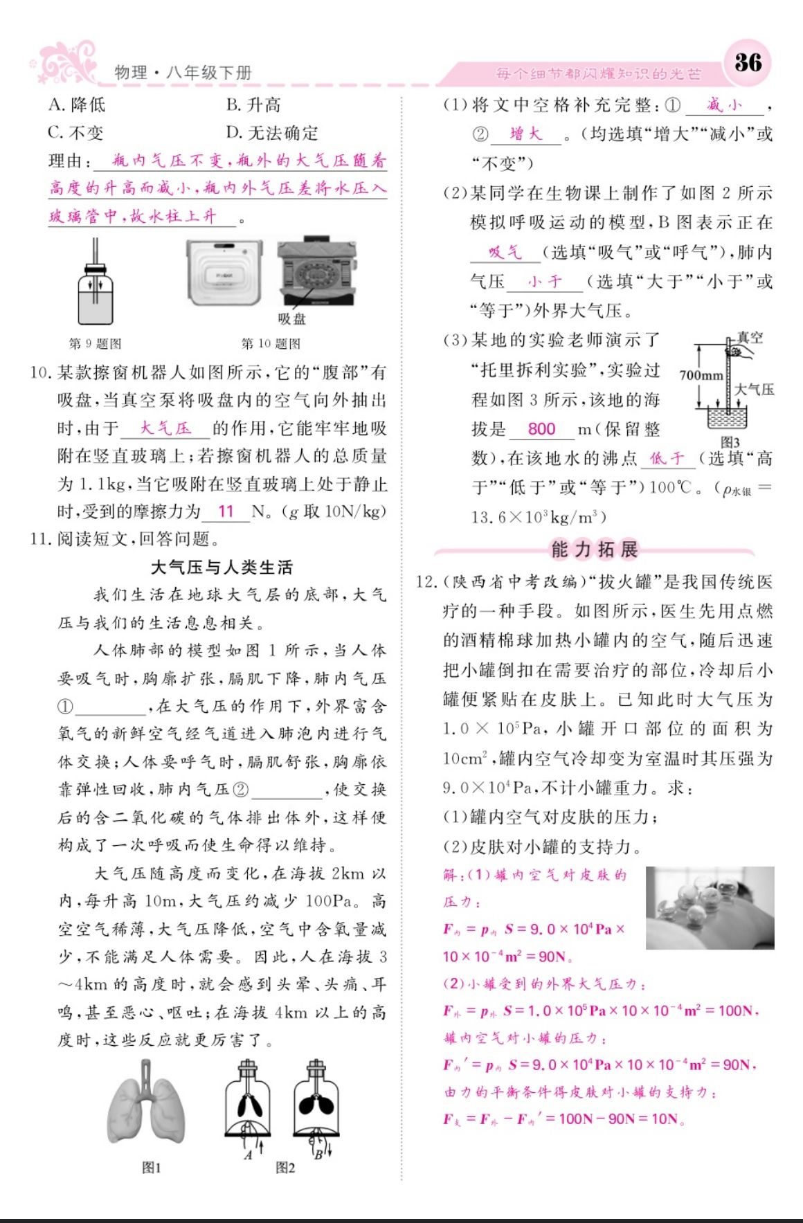 注:目前有些书本章节名称可能整理的还不是很完善,但都是按照顺序排列的,请同学们按照顺序仔细查找。练习册 2024年课堂点睛八年级物理下册人教版宁夏专版 答案主要是用来给同学们做完题方便对答案用的,请勿直接抄袭。