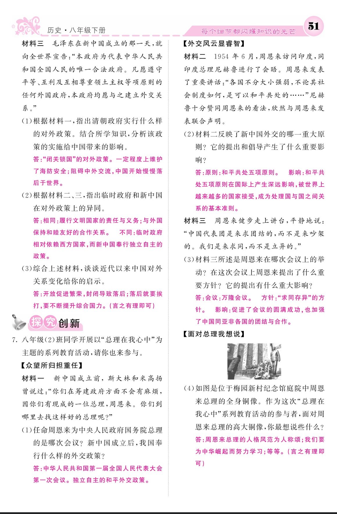 注:目前有些书本章节名称可能整理的还不是很完善,但都是按照顺序排列的,请同学们按照顺序仔细查找。练习册 2024年课堂点睛八年级历史下册人教版宁夏专版 答案主要是用来给同学们做完题方便对答案用的,请勿直接抄袭。