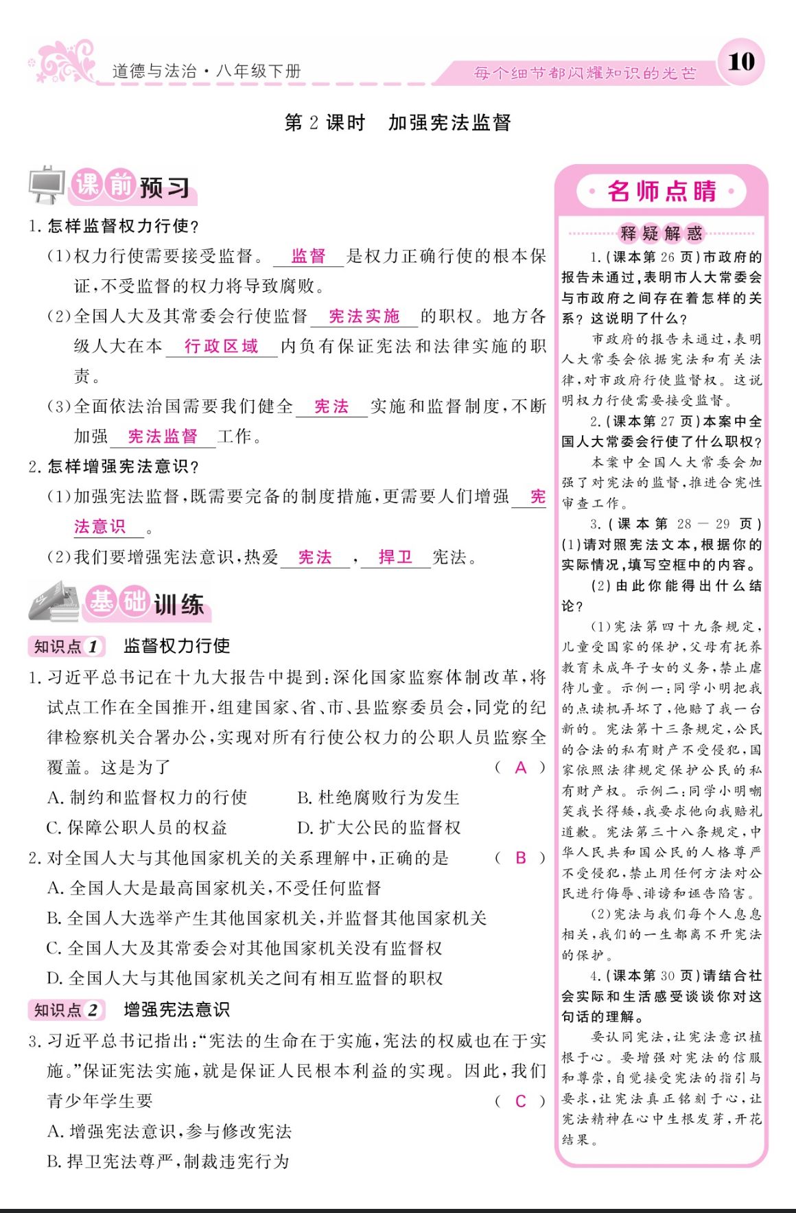 注:目前有些书本章节名称可能整理的还不是很完善,但都是按照顺序排列的,请同学们按照顺序仔细查找。练习册 2024年课堂点睛八年级道德与法治下册人教版宁夏专版 答案主要是用来给同学们做完题方便对答案用的,请勿直接抄袭。