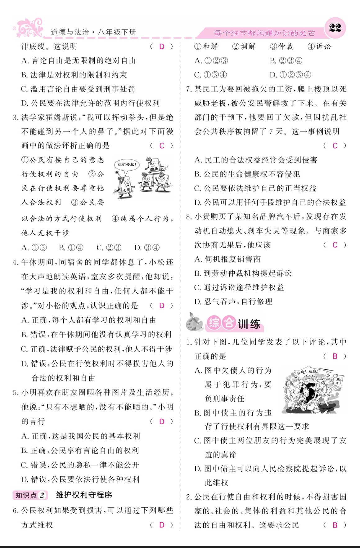 注:目前有些书本章节名称可能整理的还不是很完善,但都是按照顺序排列的,请同学们按照顺序仔细查找。练习册 2024年课堂点睛八年级道德与法治下册人教版宁夏专版 答案主要是用来给同学们做完题方便对答案用的,请勿直接抄袭。