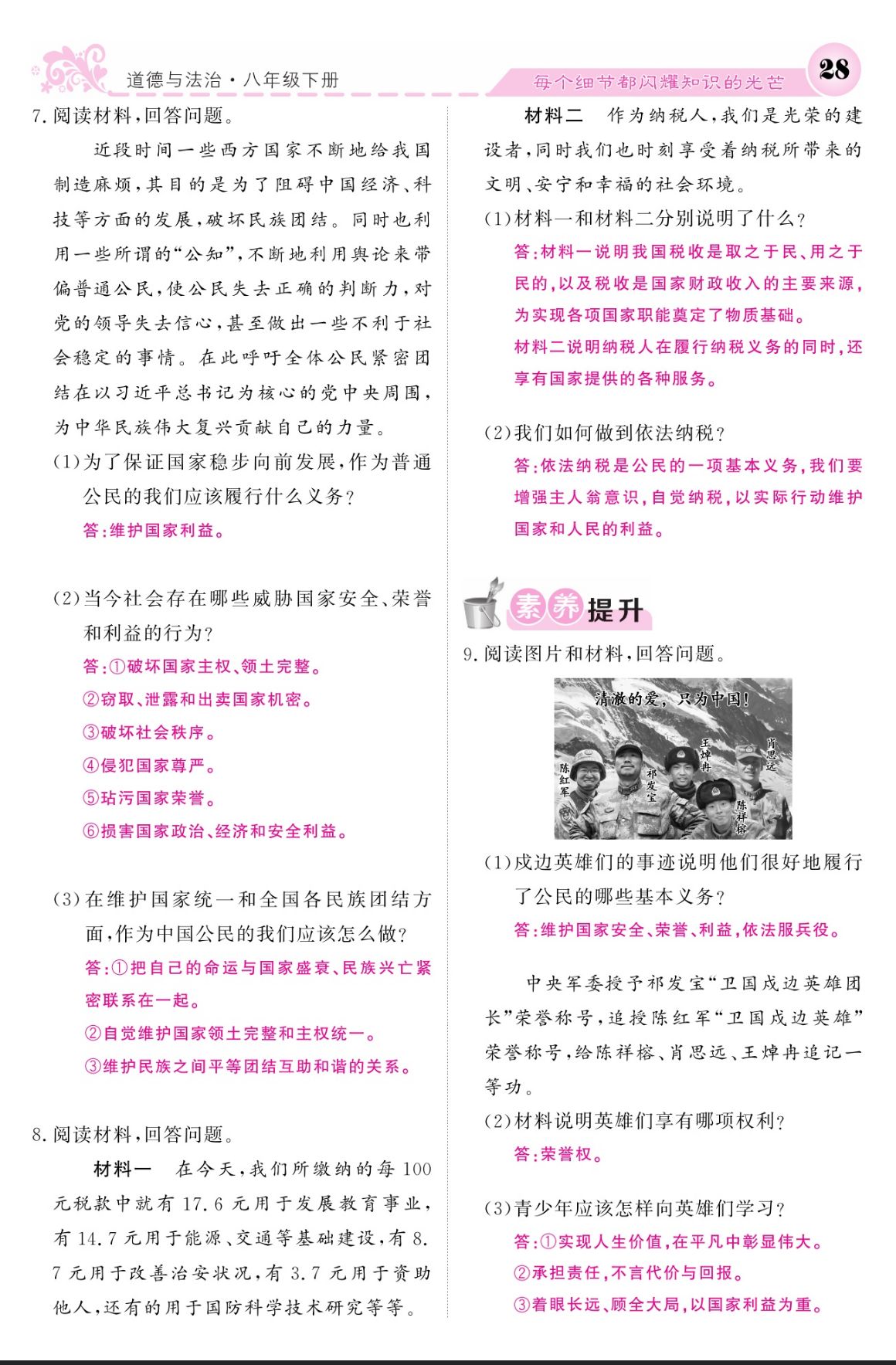 注:目前有些书本章节名称可能整理的还不是很完善,但都是按照顺序排列的,请同学们按照顺序仔细查找。练习册 2024年课堂点睛八年级道德与法治下册人教版宁夏专版 答案主要是用来给同学们做完题方便对答案用的,请勿直接抄袭。