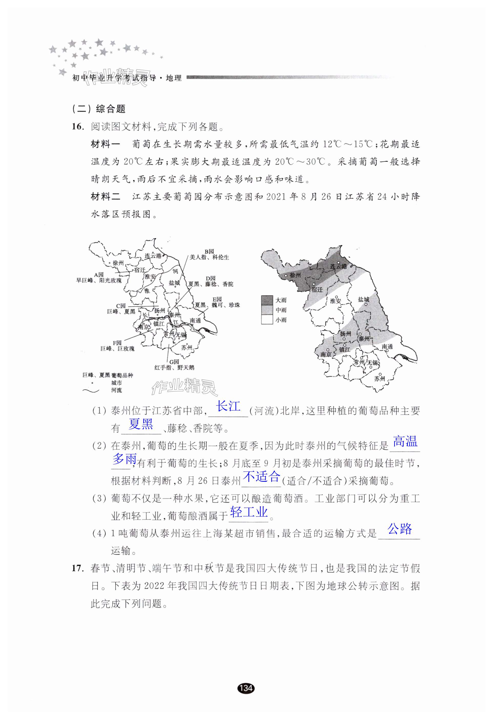 注:目前有些书本章节名称可能整理的还不是很完善,但都是按照顺序排列的,请同学们按照顺序仔细查找。练习册 2024年初中毕业升学考试指导地理 答案主要是用来给同学们做完题方便对答案用的,请勿直接抄袭。