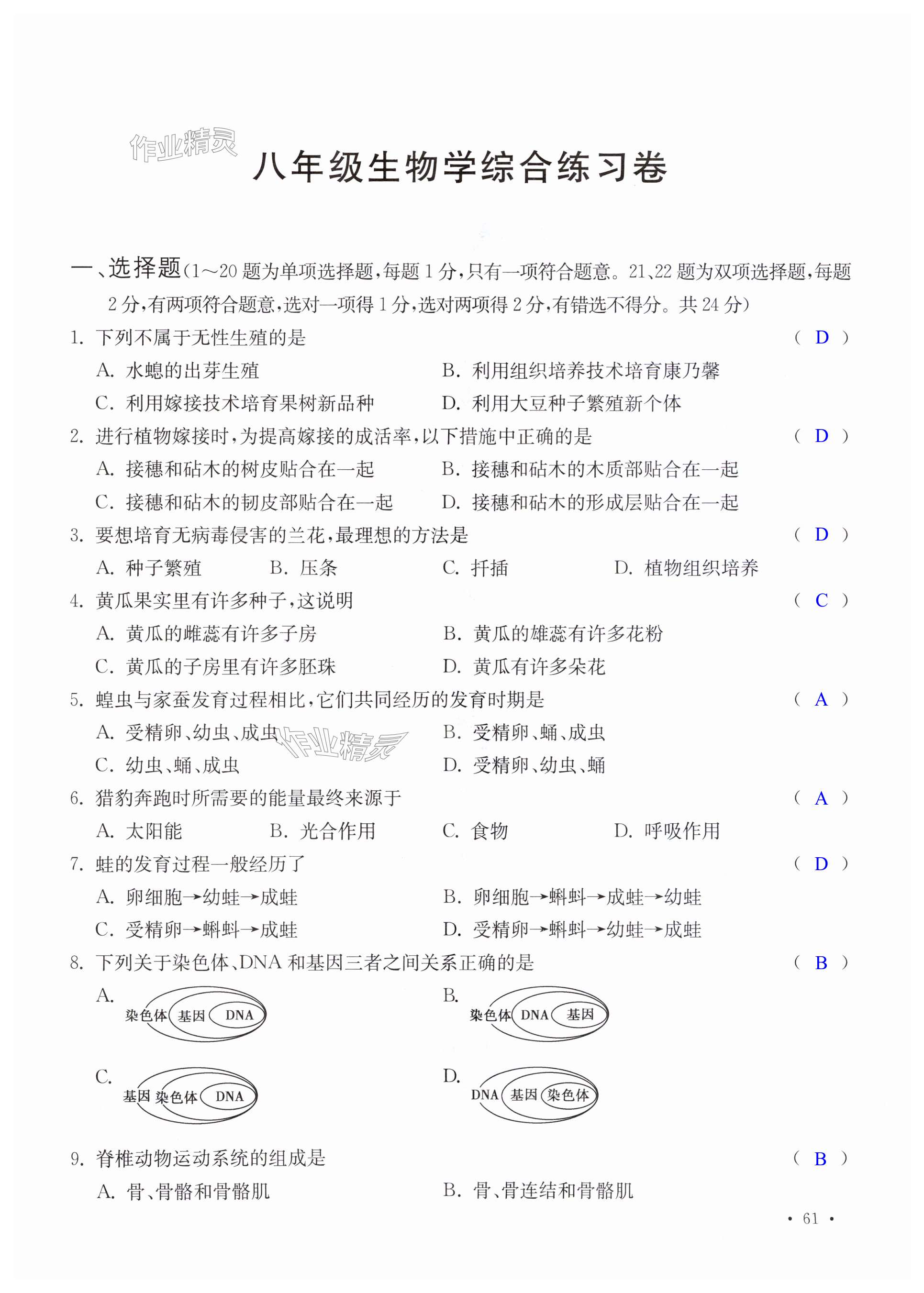 注:目前有些书本章节名称可能整理的还不是很完善,但都是按照顺序排列的,请同学们按照顺序仔细查找。练习册 2024年南京市初中总复习指南中考生物学.地理 答案主要是用来给同学们做完题方便对答案用的,请勿直接抄袭。
