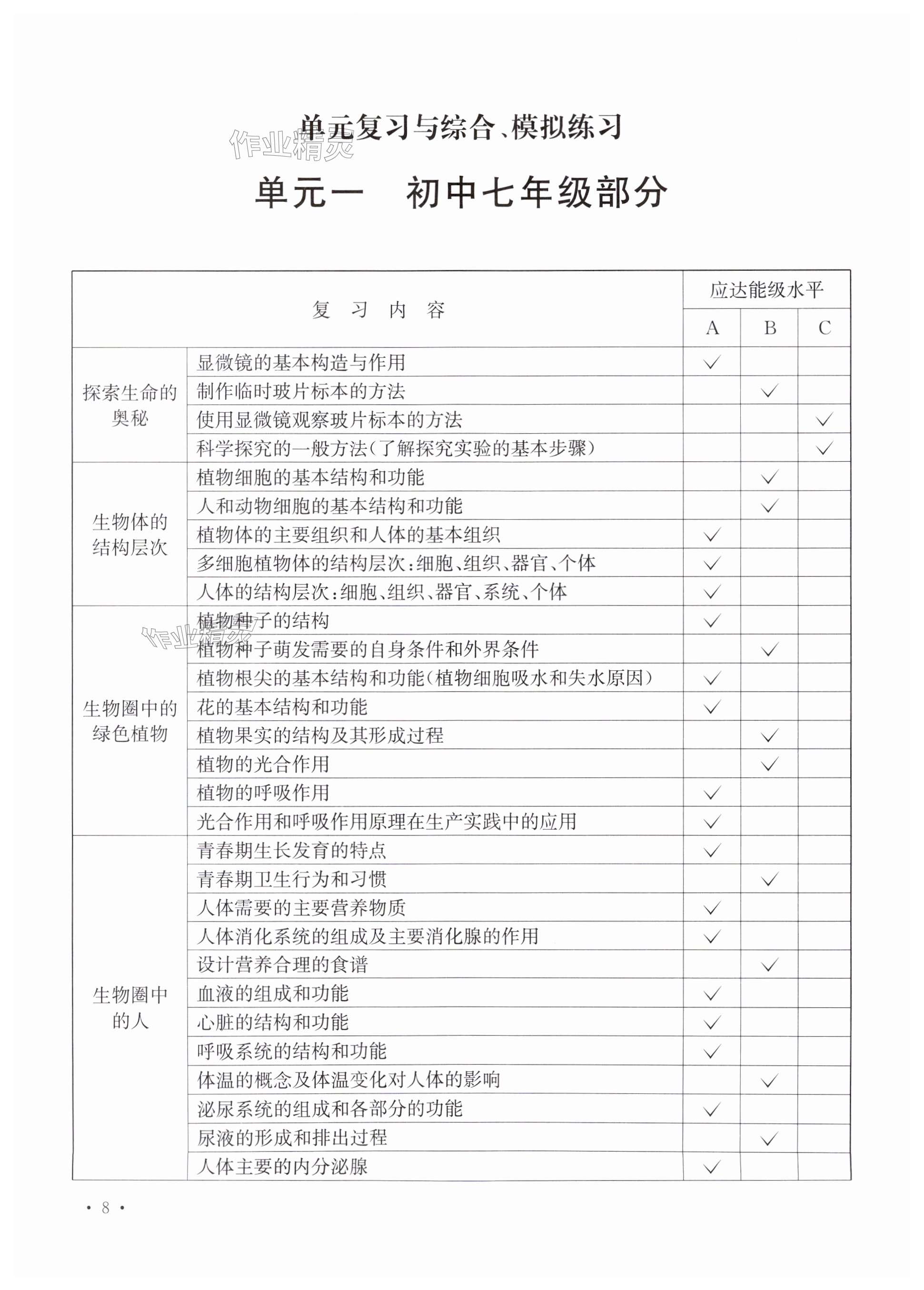 注:目前有些书本章节名称可能整理的还不是很完善,但都是按照顺序排列的,请同学们按照顺序仔细查找。练习册 2024年南京市初中总复习指南中考生物学.地理 答案主要是用来给同学们做完题方便对答案用的,请勿直接抄袭。