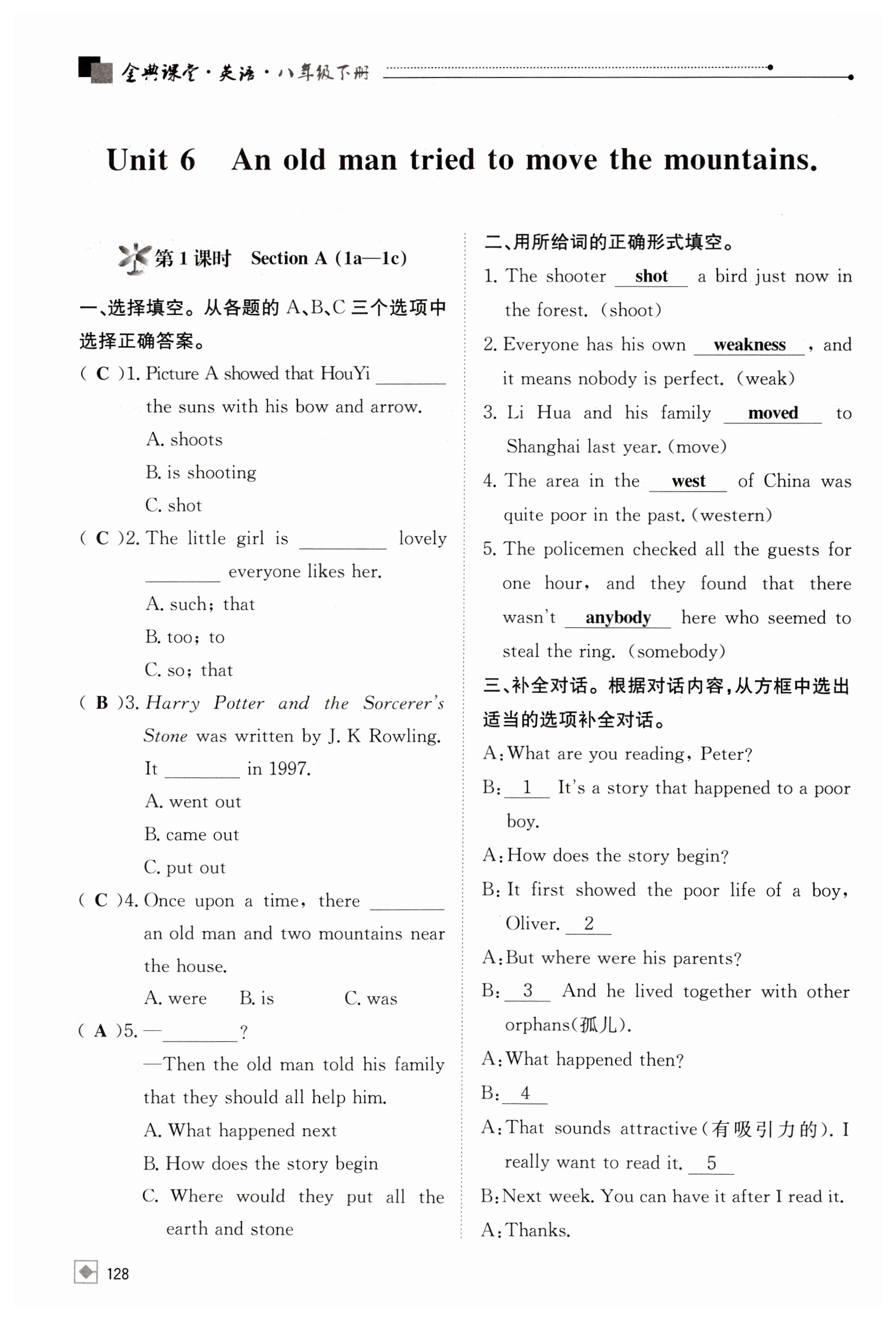 注:目前有些书本章节名称可能整理的还不是很完善,但都是按照顺序排列的,请同学们按照顺序仔细查找。练习册 2024年名校金典课堂八年级英语下册人教版成都专版 答案主要是用来给同学们做完题方便对答案用的,请勿直接抄袭。